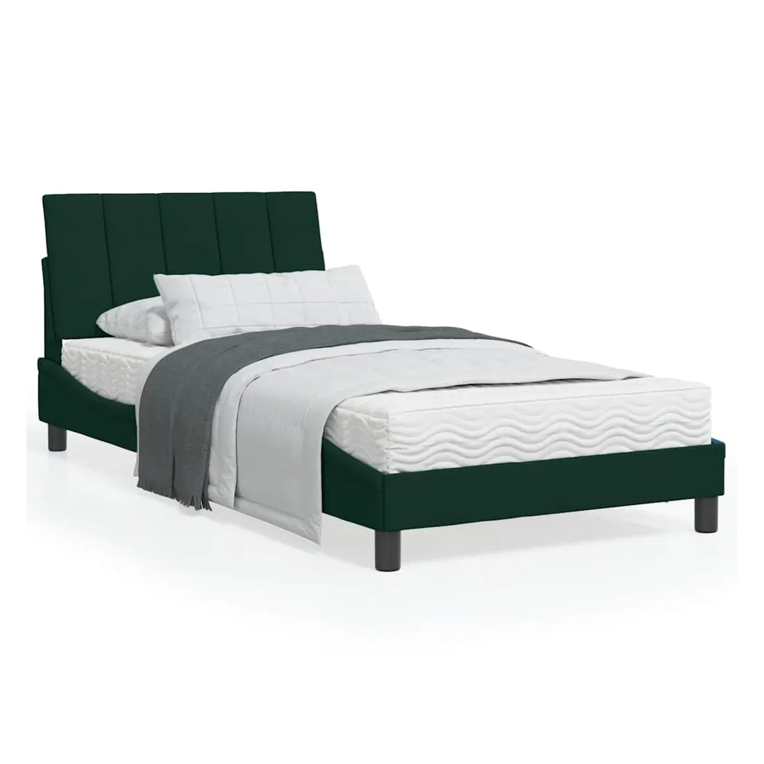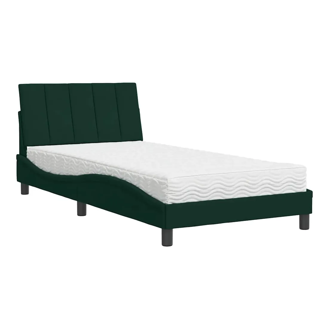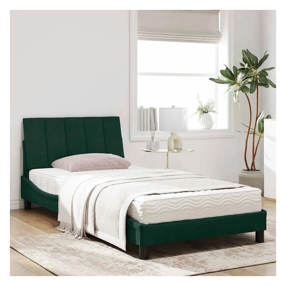Obtenez une meilleure nuit de sommeil reposante grâce à ce lit avec matelas ! Il est un supplément accueillant à toute chambre à coucher. Velours doux : le velours est un tissu doux et confortable, agréable au toucher.Lattes de contreplaqué : les lattes de contreplaqué assurent une bonne répartition du poids, garantissant que le matelas reste en place à chaque torsion de votre corps pendant le sommeil.Excellent soutien : la tête de lit vous offre un excellent soutien du dos lorsque vous êtes assis dans votre lit pour lire ou regarder la télévision.Matelas en mousse : ce matelas de lit en tissu à 3 couches est rempli de mousse PU 22D pour un confort optimal. Il contribue à soulager la fatigue et à favoriser la circulation sanguine, vous offrant ainsi une relaxation complète et une bonne qualité de sommeil. En outre, le matelas est disponible en dureté H2 et H3, de sorte que vous pouvez simplement tourner le matelas pour choisir la dureté qui vous convient le mieux.Design latéral ondulé : l’aspect ondulé du cadre de lit est élégant et sophistiqué, ajoutant une touche moderne et élégante à votre décor, ce qui en fait le point central de votre chambre à coucher.