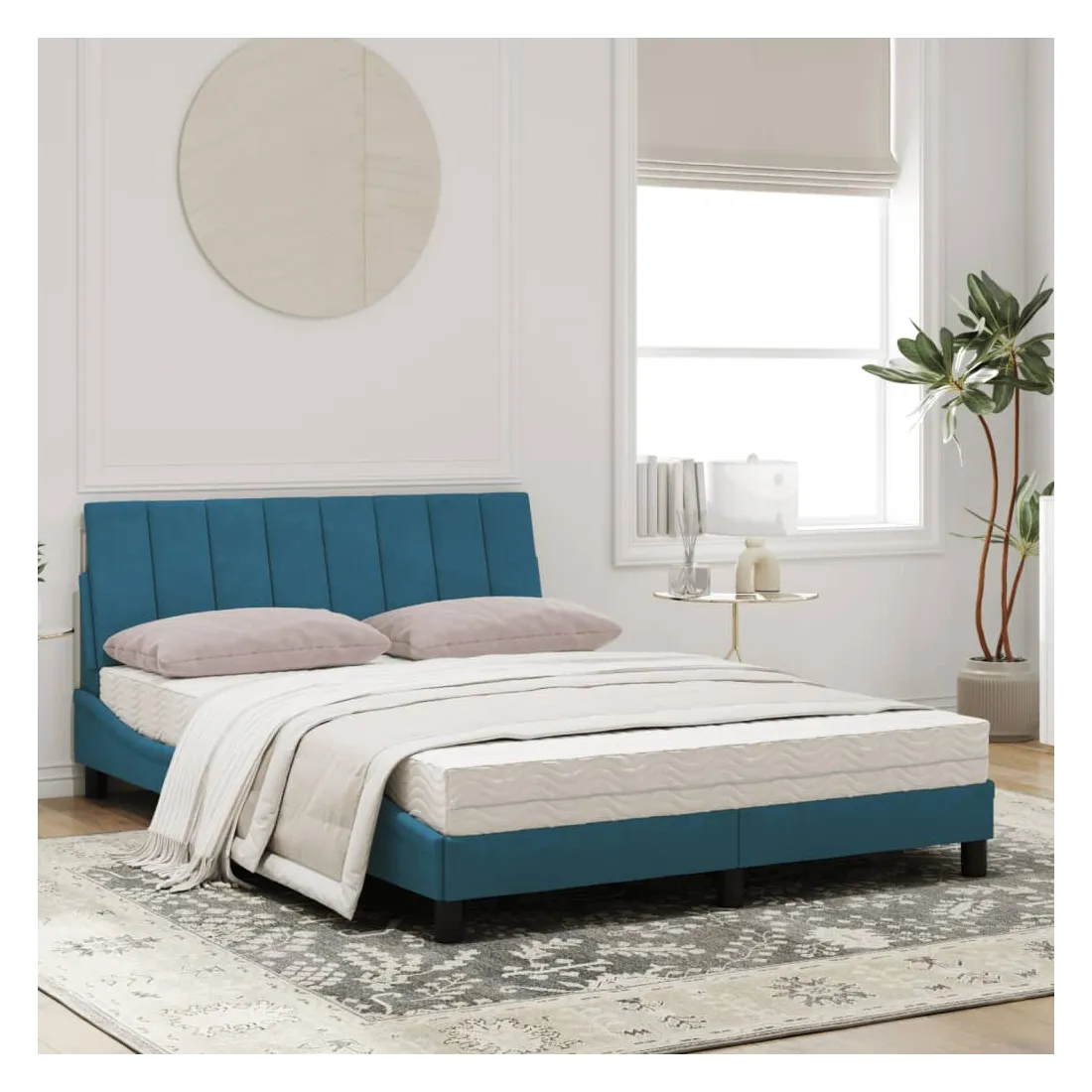 Obtenez une meilleure nuit de sommeil reposante grâce à ce lit avec matelas ! Il est un supplément accueillant à toute chambre à coucher. Velours doux : le velours est un tissu doux et confortable, agréable au toucher.Lattes de contreplaqué : les lattes de contreplaqué assurent une bonne répartition du poids, garantissant que le matelas reste en place à chaque torsion de votre corps pendant le sommeil.Excellent soutien : la tête de lit vous offre un excellent soutien du dos lorsque vous êtes assis dans votre lit pour lire ou regarder la télévision.Matelas en mousse : ce matelas de lit en tissu à 3 couches est rempli de mousse PU 22D pour un confort optimal. Il contribue à soulager la fatigue et à favoriser la circulation sanguine, vous offrant ainsi une relaxation complète et une bonne qualité de sommeil. En outre, le matelas est disponible en dureté H2 et H3, de sorte que vous pouvez simplement tourner le matelas pour choisir la dureté qui vous convient le mieux.Design latéral ondulé : l’aspect ondulé du cadre de lit est élégant et sophistiqué, ajoutant une touche moderne et élégante à votre décor, ce qui en fait le point central de votre chambre à coucher.