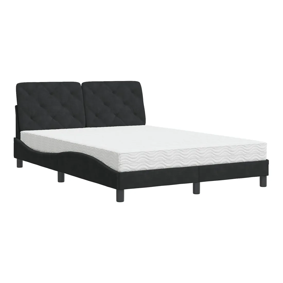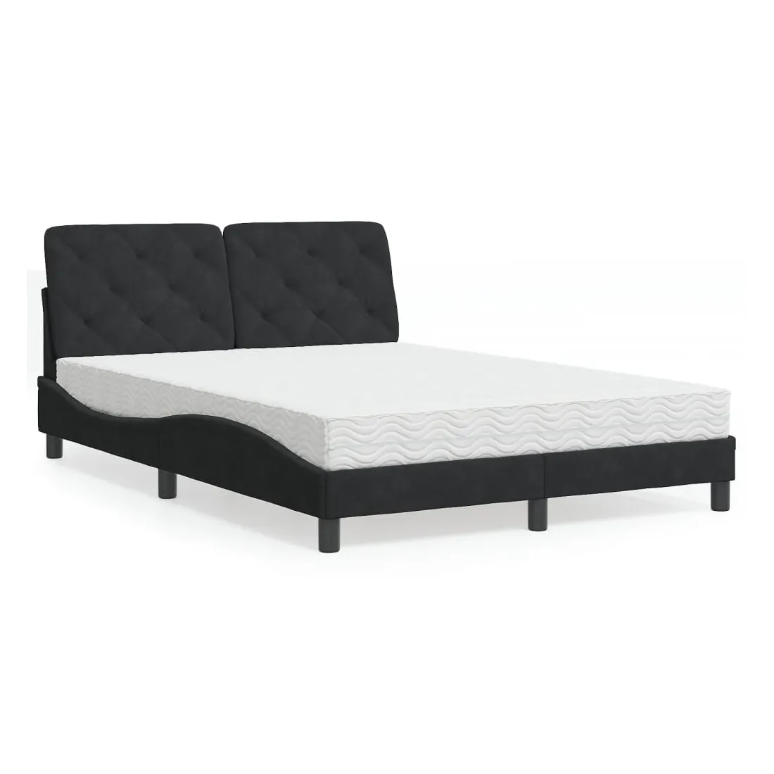 Obtenez une meilleure nuit de sommeil reposante grâce à ce lit avec matelas ! Il est un supplément accueillant à toute chambre à coucher. Velours doux : le velours est un tissu doux et confortable, agréable au toucher.Lattes de contreplaqué : les lattes de contreplaqué assurent une bonne répartition du poids, garantissant que le matelas reste en place à chaque torsion de votre corps pendant le sommeil.Excellent soutien : la tête de lit vous offre un excellent soutien du dos lorsque vous êtes assis dans votre lit pour lire ou regarder la télévision.Matelas en mousse : ce matelas de lit en tissu à 3 couches est rempli de mousse PU 22D pour un confort optimal. Il contribue à soulager la fatigue et à favoriser la circulation sanguine, vous offrant ainsi une relaxation complète et une bonne qualité de sommeil. En outre, le matelas est disponible en dureté H2 et H3, de sorte que vous pouvez simplement tourner le matelas pour choisir la dureté qui vous convient le mieux.Design latéral ondulé : l’aspect ondulé du cadre de lit est élégant et sophistiqué, ajoutant une touche moderne et élégante à votre décor, ce qui en fait le point central de votre chambre à coucher.
