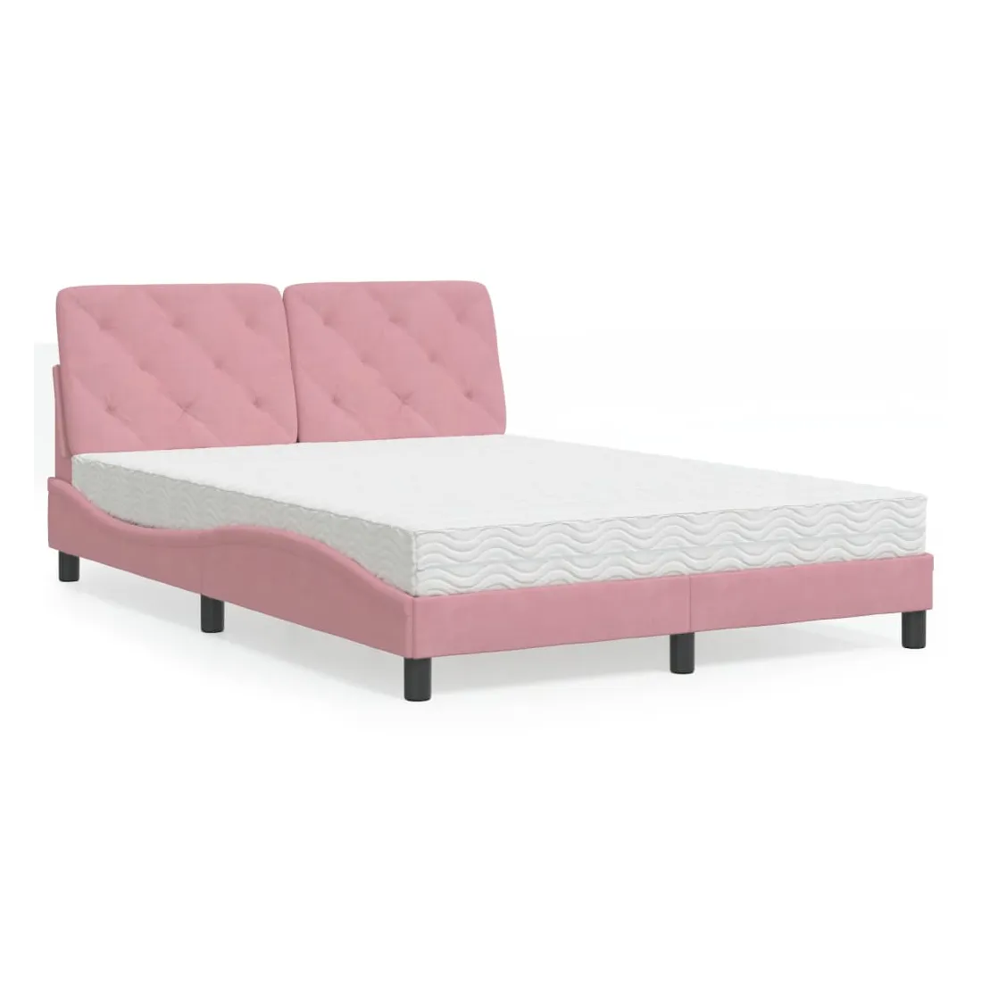 Obtenez une meilleure nuit de sommeil reposante grâce à ce lit avec matelas ! Il est un supplément accueillant à toute chambre à coucher. Velours doux : le velours est un tissu doux et confortable, agréable au toucher.Lattes de contreplaqué : les lattes de contreplaqué assurent une bonne répartition du poids, garantissant que le matelas reste en place à chaque torsion de votre corps pendant le sommeil.Excellent soutien : la tête de lit vous offre un excellent soutien du dos lorsque vous êtes assis dans votre lit pour lire ou regarder la télévision.Matelas en mousse : ce matelas de lit en tissu à 3 couches est rempli de mousse PU 22D pour un confort optimal. Il contribue à soulager la fatigue et à favoriser la circulation sanguine, vous offrant ainsi une relaxation complète et une bonne qualité de sommeil. En outre, le matelas est disponible en dureté H2 et H3, de sorte que vous pouvez simplement tourner le matelas pour choisir la dureté qui vous convient le mieux.Design latéral ondulé : l’aspect ondulé du cadre de lit est élégant et sophistiqué, ajoutant une touche moderne et élégante à votre décor, ce qui en fait le point central de votre chambre à coucher.
