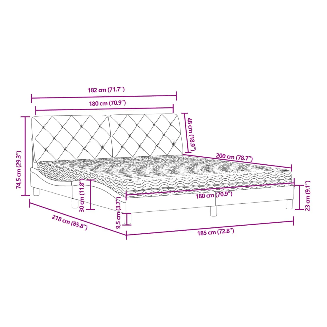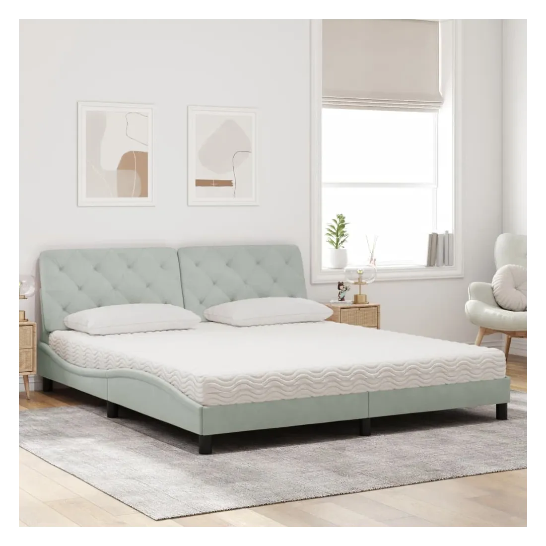 Obtenez une meilleure nuit de sommeil reposante grâce à ce lit avec matelas ! Il est un supplément accueillant à toute chambre à coucher. Velours doux : le velours est un tissu doux et confortable, agréable au toucher.Lattes de contreplaqué : les lattes de contreplaqué assurent une bonne répartition du poids, garantissant que le matelas reste en place à chaque torsion de votre corps pendant le sommeil.Excellent soutien : la tête de lit vous offre un excellent soutien du dos lorsque vous êtes assis dans votre lit pour lire ou regarder la télévision.Matelas en mousse : ce matelas de lit en tissu à 3 couches est rempli de mousse PU 22D pour un confort optimal. Il contribue à soulager la fatigue et à favoriser la circulation sanguine, vous offrant ainsi une relaxation complète et une bonne qualité de sommeil. En outre, le matelas est disponible en dureté H2 et H3, de sorte que vous pouvez simplement tourner le matelas pour choisir la dureté qui vous convient le mieux.Design latéral ondulé : l’aspect ondulé du cadre de lit est élégant et sophistiqué, ajoutant une touche moderne et élégante à votre décor, ce qui en fait le point central de votre chambre à coucher.