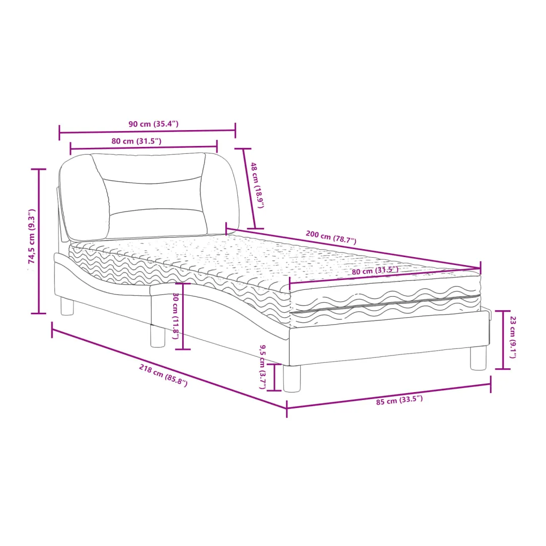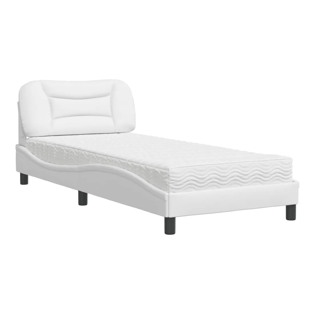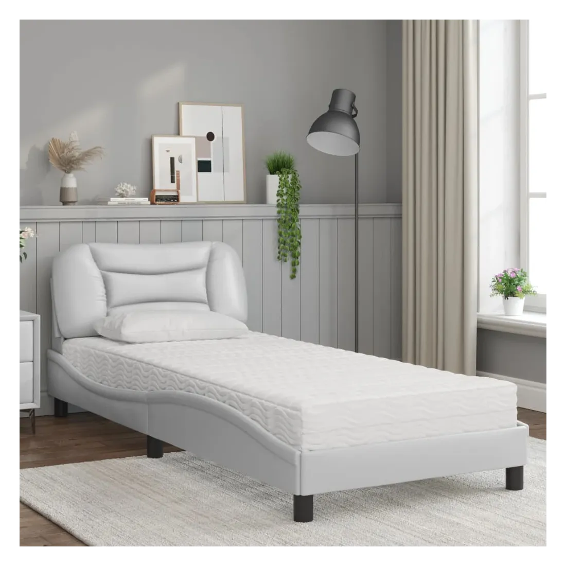 Obtenez une meilleure nuit de sommeil reposante grâce à ce lit avec matelas ! Il est un supplément accueillant à toute chambre à coucher. Similicuir durable : le similicuir de qualité supérieure est un matériau très durable. Il est résistant aux taches, ce qui le rend facile à nettoyer avec un chiffon humide. La surface lisse donne également un aspect luxueux et la beauté du cuir véritable.Lattes de contreplaqué : les lattes de contreplaqué assurent une bonne répartition du poids, garantissant que le matelas reste en place à chaque torsion de votre corps pendant le sommeil.Excellent soutien : la tête de lit vous offre un excellent soutien du dos lorsque vous êtes assis dans votre lit pour lire ou regarder la télévision.Matelas en mousse : ce matelas de lit en tissu à 3 couches est rempli de mousse PU 22D pour un confort optimal. Il contribue à soulager la fatigue et à favoriser la circulation sanguine, vous offrant ainsi une relaxation complète et une bonne qualité de sommeil. En outre, le matelas est disponible en dureté H2 et H3, de sorte que vous pouvez simplement tourner le matelas pour choisir la dureté qui vous convient le mieux.Design latéral ondulé : l’aspect ondulé du cadre de lit est élégant et sophistiqué, ajoutant une touche moderne et élégante à votre décor, ce qui en fait le point central de votre chambre à coucher.