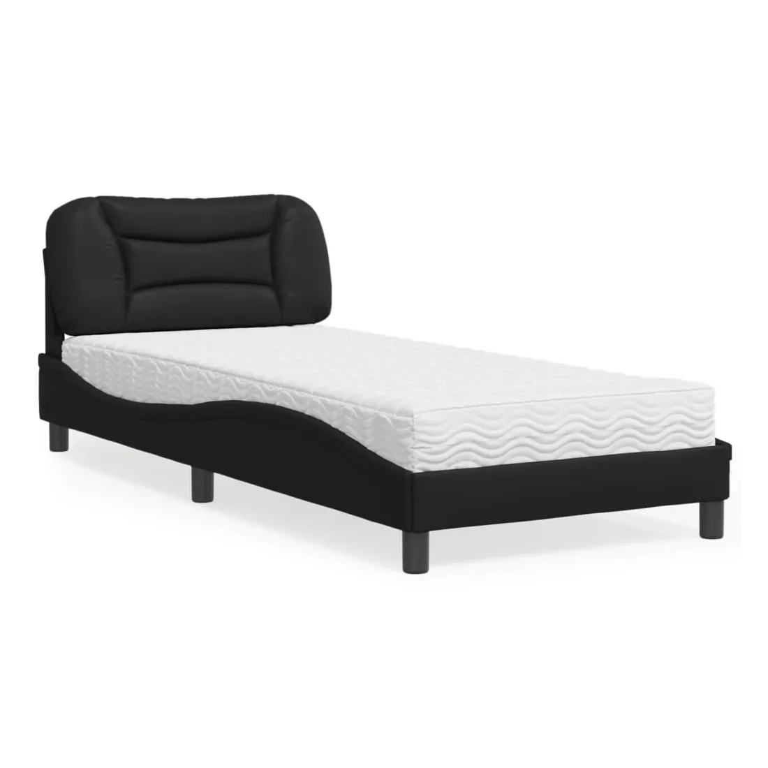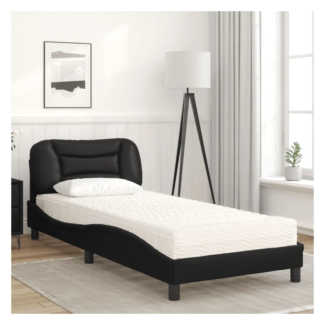 Obtenez une meilleure nuit de sommeil reposante grâce à ce lit avec matelas ! Il est un supplément accueillant à toute chambre à coucher. Similicuir durable : le similicuir de qualité supérieure est un matériau très durable. Il est résistant aux taches, ce qui le rend facile à nettoyer avec un chiffon humide. La surface lisse donne également un aspect luxueux et la beauté du cuir véritable.Lattes de contreplaqué : les lattes de contreplaqué assurent une bonne répartition du poids, garantissant que le matelas reste en place à chaque torsion de votre corps pendant le sommeil.Excellent soutien : la tête de lit vous offre un excellent soutien du dos lorsque vous êtes assis dans votre lit pour lire ou regarder la télévision.Matelas en mousse : ce matelas de lit en tissu à 3 couches est rempli de mousse PU 22D pour un confort optimal. Il contribue à soulager la fatigue et à favoriser la circulation sanguine, vous offrant ainsi une relaxation complète et une bonne qualité de sommeil. En outre, le matelas est disponible en dureté H2 et H3, de sorte que vous pouvez simplement tourner le matelas pour choisir la dureté qui vous convient le mieux.Design latéral ondulé : l’aspect ondulé du cadre de lit est élégant et sophistiqué, ajoutant une touche moderne et élégante à votre décor, ce qui en fait le point central de votre chambre à coucher.