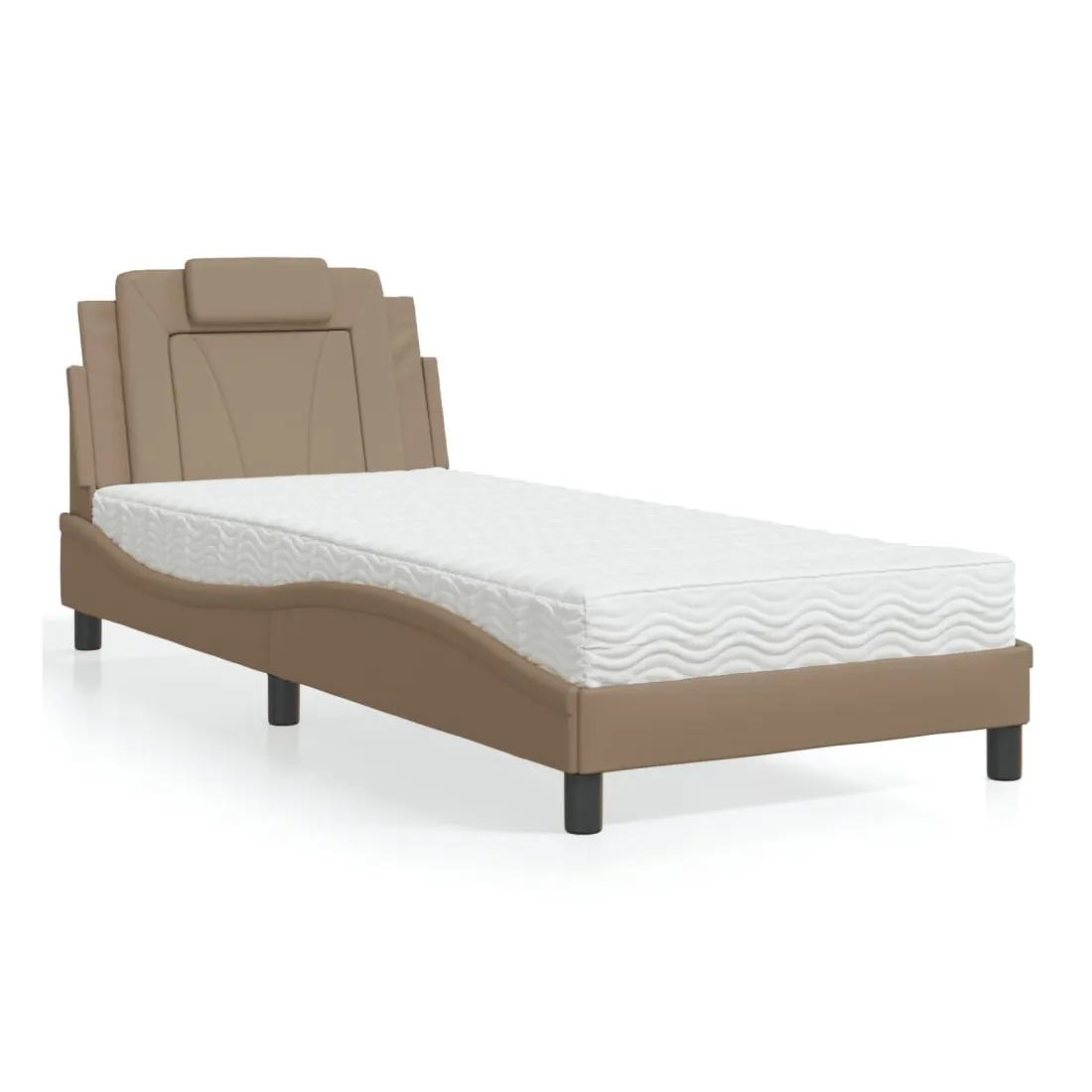 Obtenez une meilleure nuit de sommeil reposante grâce à ce lit avec matelas ! Il est un supplément accueillant à toute chambre à coucher. Similicuir durable : le similicuir de qualité supérieure est un matériau très durable. Il est résistant aux taches, ce qui le rend facile à nettoyer avec un chiffon humide. La surface lisse donne également un aspect luxueux et la beauté du cuir véritable. Lattes de contreplaqué : les lattes de contreplaqué assurent une bonne répartition du poids, garantissant que le matelas reste en place à chaque torsion de votre corps pendant le sommeil. Excellent soutien : l'oreiller de tête de lit est rembourré avec de la mousse pour un confort ultra doux et optimal vous offre un excellent soutien du dos lorsque vous êtes assis dans votre lit pour lire ou regarder la télévision. Matelas en mousse : ce matelas de lit en tissu à 3 couches est rempli de mousse PU 22D pour un confort optimal. Il contribue à soulager la fatigue et à favoriser la circulation sanguine, vous offrant ainsi une relaxation complète et une bonne qualité de sommeil. En outre, le matelas est disponible en dureté H2 et H3, de sorte que vous pouvez simplement tourner le matelas pour choisir la dureté qui vous convient le mieux. Design latéral ondulé : l’aspect ondulé du cadre de lit est élégant et sophistiqué, ajoutant une touche moderne et élégante à votre décor, ce qui en fait le point central de votre chambre à coucher.