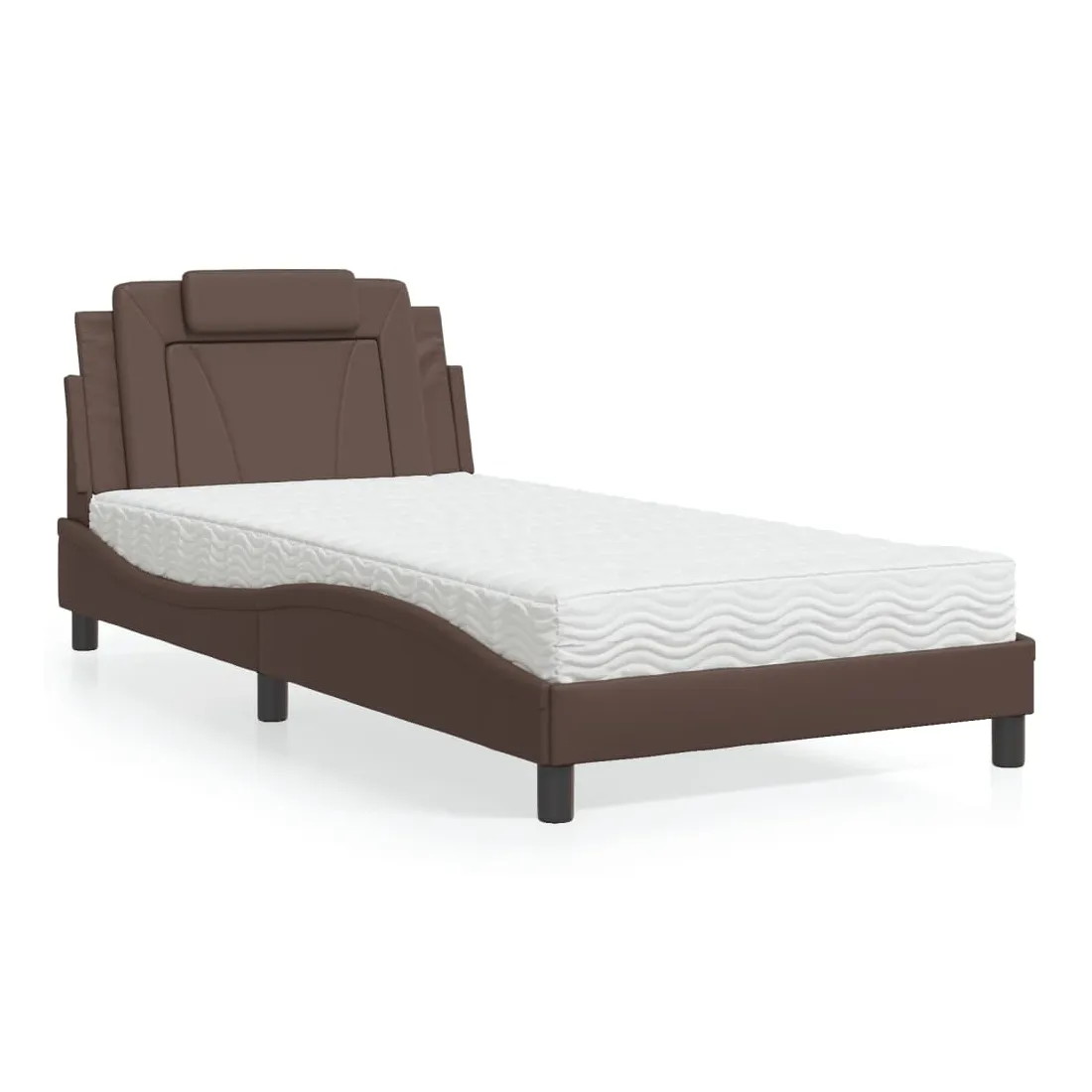 Obtenez une meilleure nuit de sommeil reposante grâce à ce lit avec matelas ! Il est un supplément accueillant à toute chambre à coucher. Similicuir durable : le similicuir de qualité supérieure est un matériau très durable. Il est résistant aux taches, ce qui le rend facile à nettoyer avec un chiffon humide. La surface lisse donne également un aspect luxueux et la beauté du cuir véritable. Lattes de contreplaqué : les lattes de contreplaqué assurent une bonne répartition du poids, garantissant que le matelas reste en place à chaque torsion de votre corps pendant le sommeil. Excellent soutien : l'oreiller de tête de lit est rembourré avec de la mousse pour un confort ultra doux et optimal vous offre un excellent soutien du dos lorsque vous êtes assis dans votre lit pour lire ou regarder la télévision. Matelas en mousse : ce matelas de lit en tissu à 3 couches est rempli de mousse PU 22D pour un confort optimal. Il contribue à soulager la fatigue et à favoriser la circulation sanguine, vous offrant ainsi une relaxation complète et une bonne qualité de sommeil. En outre, le matelas est disponible en dureté H2 et H3, de sorte que vous pouvez simplement tourner le matelas pour choisir la dureté qui vous convient le mieux. Design latéral ondulé : l’aspect ondulé du cadre de lit est élégant et sophistiqué, ajoutant une touche moderne et élégante à votre décor, ce qui en fait le point central de votre chambre à coucher.
