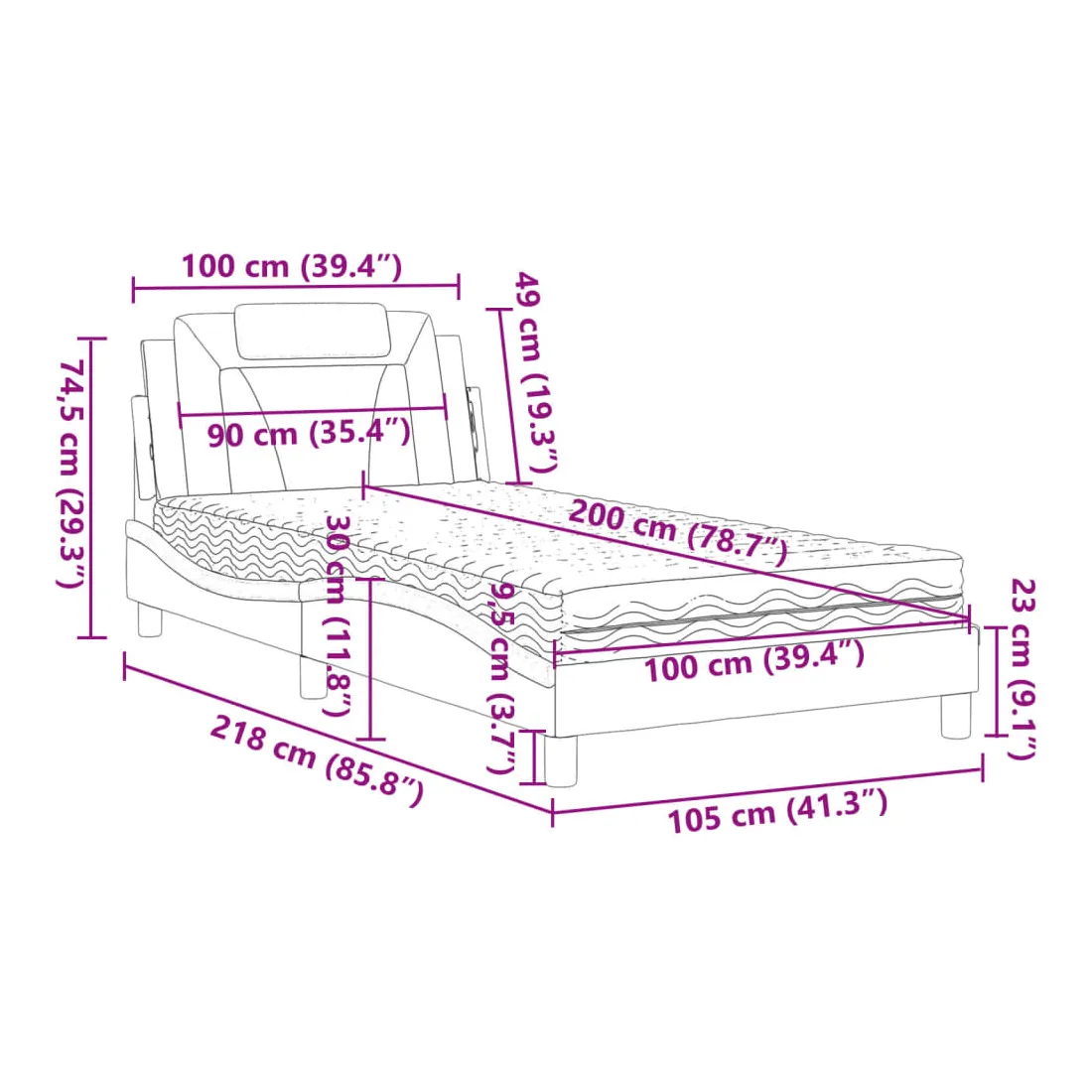 - Dimensions totales : 218 x 105 x 74,5 cm (L x l x H)