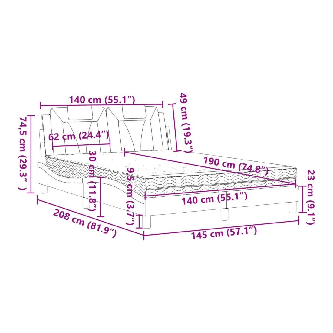 Obtenez une meilleure nuit de sommeil reposante grâce à ce lit avec matelas ! Il est un supplément accueillant à toute chambre à coucher. Similicuir durable : le similicuir de qualité supérieure est un matériau très durable. Il est résistant aux taches, ce qui le rend facile à nettoyer avec un chiffon humide. La surface lisse donne également un aspect luxueux et la beauté du cuir véritable. Lattes de contreplaqué : les lattes de contreplaqué assurent une bonne répartition du poids, garantissant que le matelas reste en place à chaque torsion de votre corps pendant le sommeil. Excellent soutien : l'oreiller de tête de lit est rembourré avec de la mousse pour un confort ultra doux et optimal vous offre un excellent soutien du dos lorsque vous êtes assis dans votre lit pour lire ou regarder la télévision. Matelas en mousse : ce matelas de lit en tissu à 3 couches est rempli de mousse PU 22D pour un confort optimal. Il contribue à soulager la fatigue et à favoriser la circulation sanguine, vous offrant ainsi une relaxation complète et une bonne qualité de sommeil. En outre, le matelas est disponible en dureté H2 et H3, de sorte que vous pouvez simplement tourner le matelas pour choisir la dureté qui vous convient le mieux. Design latéral ondulé : l’aspect ondulé du cadre de lit est élégant et sophistiqué, ajoutant une touche moderne et élégante à votre décor, ce qui en fait le point central de votre chambre à coucher.