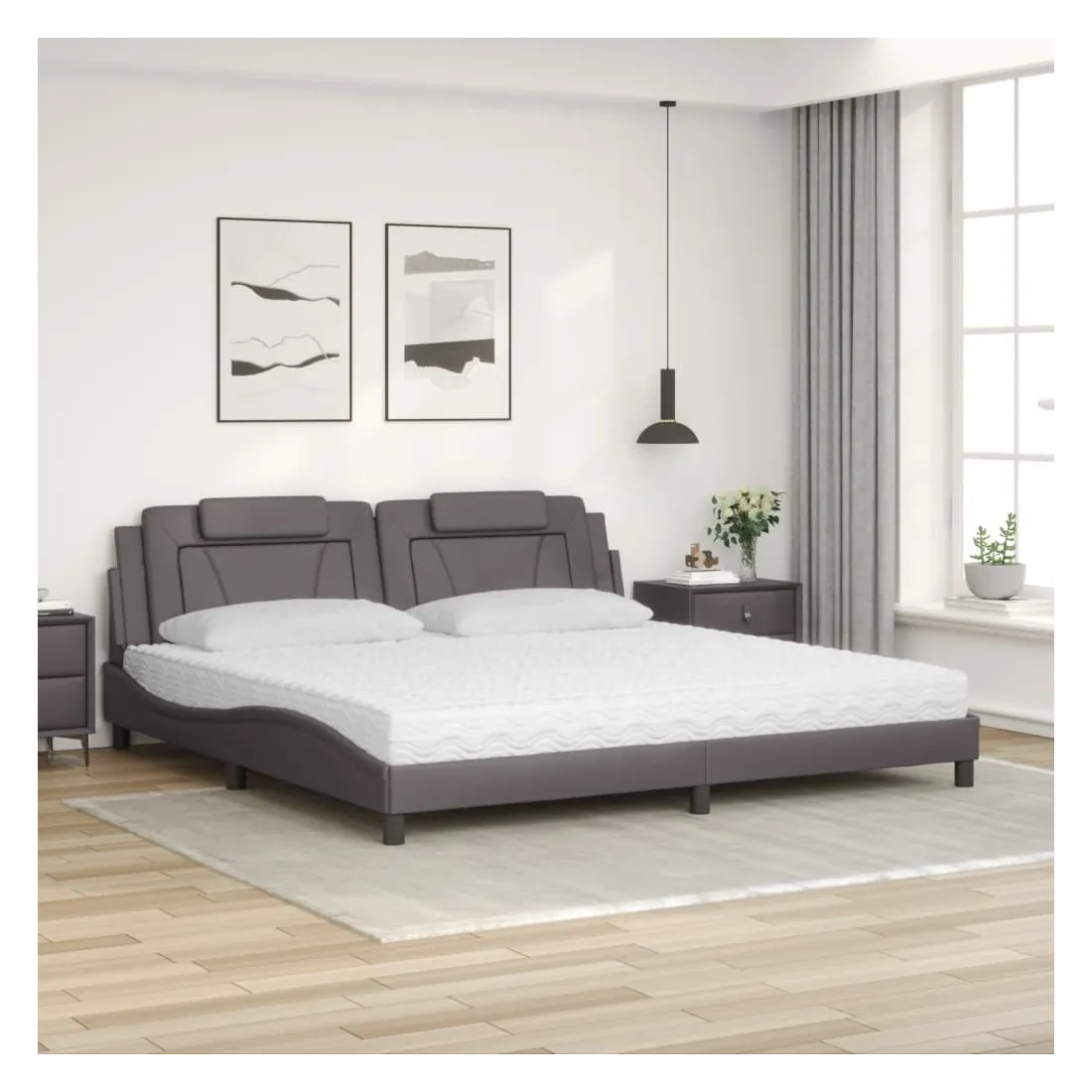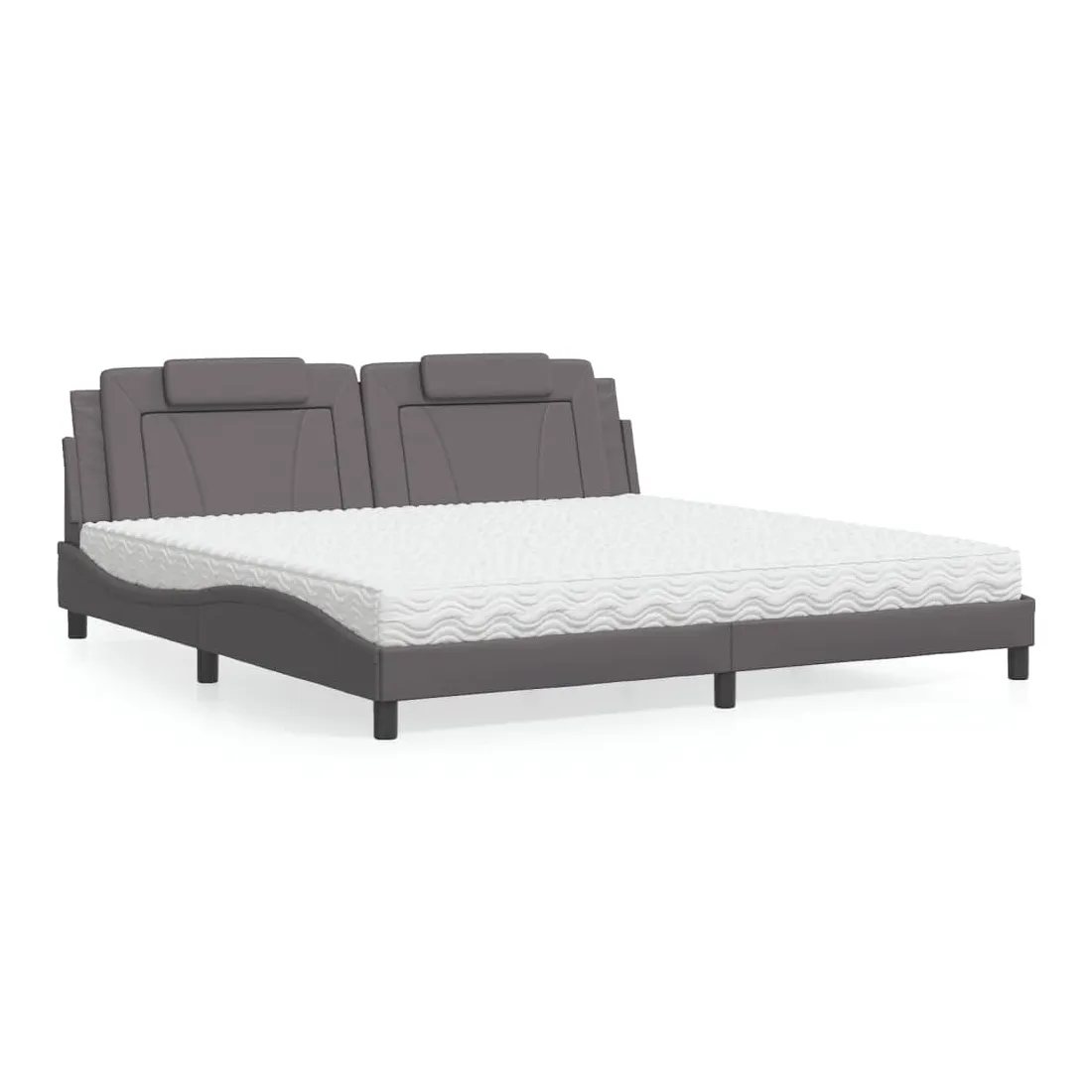 Obtenez une meilleure nuit de sommeil reposante grâce à ce lit avec matelas ! Il est un supplément accueillant à toute chambre à coucher. Similicuir durable : le similicuir de qualité supérieure est un matériau très durable. Il est résistant aux taches, ce qui le rend facile à nettoyer avec un chiffon humide. La surface lisse donne également un aspect luxueux et la beauté du cuir véritable. Lattes de contreplaqué : les lattes de contreplaqué assurent une bonne répartition du poids, garantissant que le matelas reste en place à chaque torsion de votre corps pendant le sommeil. Excellent soutien : l'oreiller de tête de lit est rembourré avec de la mousse pour un confort ultra doux et optimal vous offre un excellent soutien du dos lorsque vous êtes assis dans votre lit pour lire ou regarder la télévision. Matelas en mousse : ce matelas de lit en tissu à 3 couches est rempli de mousse PU 22D pour un confort optimal. Il contribue à soulager la fatigue et à favoriser la circulation sanguine, vous offrant ainsi une relaxation complète et une bonne qualité de sommeil. En outre, le matelas est disponible en dureté H2 et H3, de sorte que vous pouvez simplement tourner le matelas pour choisir la dureté qui vous convient le mieux. Design latéral ondulé : l’aspect ondulé du cadre de lit est élégant et sophistiqué, ajoutant une touche moderne et élégante à votre décor, ce qui en fait le point central de votre chambre à coucher.
