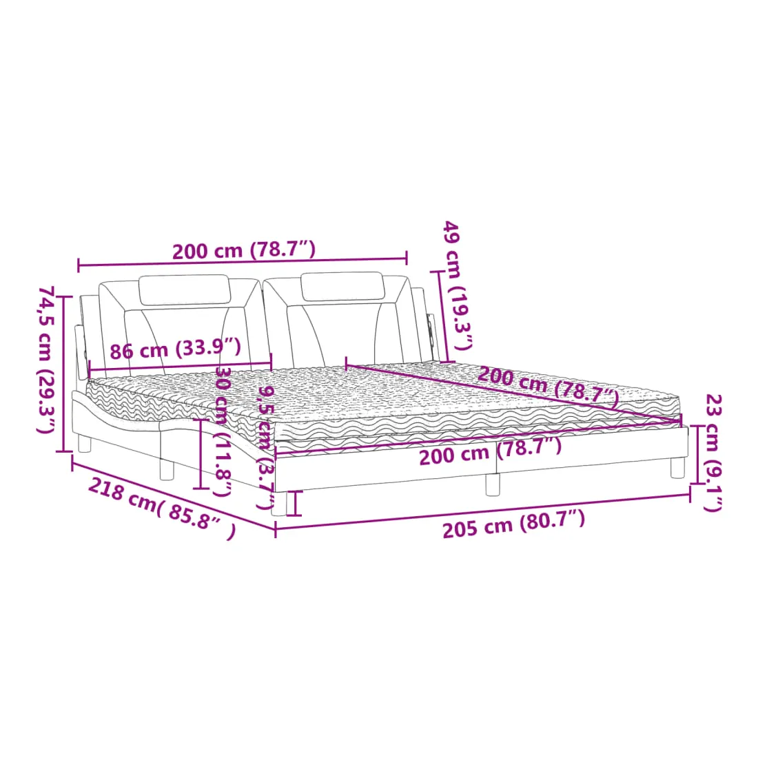 vidaXLObtenez une meilleure nuit de sommeil reposante grâce à ce lit avec matelas ! Il est un supplément accueillant à toute chambre à coucher. Similicuir durable : le similicuir de qualité supérieure est un matériau très durable. Il est résistant aux taches, ce qui le rend facile à nettoyer avec un chiffon humide. La surface lisse donne également un aspect luxueux et la beauté du cuir véritable. Lattes de contreplaqué : les lattes de contreplaqué assurent une bonne répartition du poids, garantissant que le matelas reste en place à chaque torsion de votre corps pendant le sommeil. Excellent soutien : l'oreiller de tête de lit est rembourré avec de la mousse pour un confort ultra doux et optimal vous offre un excellent soutien du dos lorsque vous êtes assis dans votre lit pour lire ou regarder la télévision. Matelas en mousse : ce matelas de lit en tissu à 3 couches est rempli de mousse PU 22D pour un confort optimal. Il contribue à soulager la fatigue et à favoriser la circulation sanguine, vous offrant ainsi une relaxation complète et une bonne qualité de sommeil. En outre, le matelas est disponible en dureté H2 et H3, de sorte que vous pouvez simplement tourner le matelas pour choisir la dureté qui vous convient le mieux. Design latéral ondulé : l’aspect ondulé du cadre de lit est élégant et sophistiqué, ajoutant une touche moderne et élégante à votre décor, ce qui en fait le point central de votre chambre à coucher.