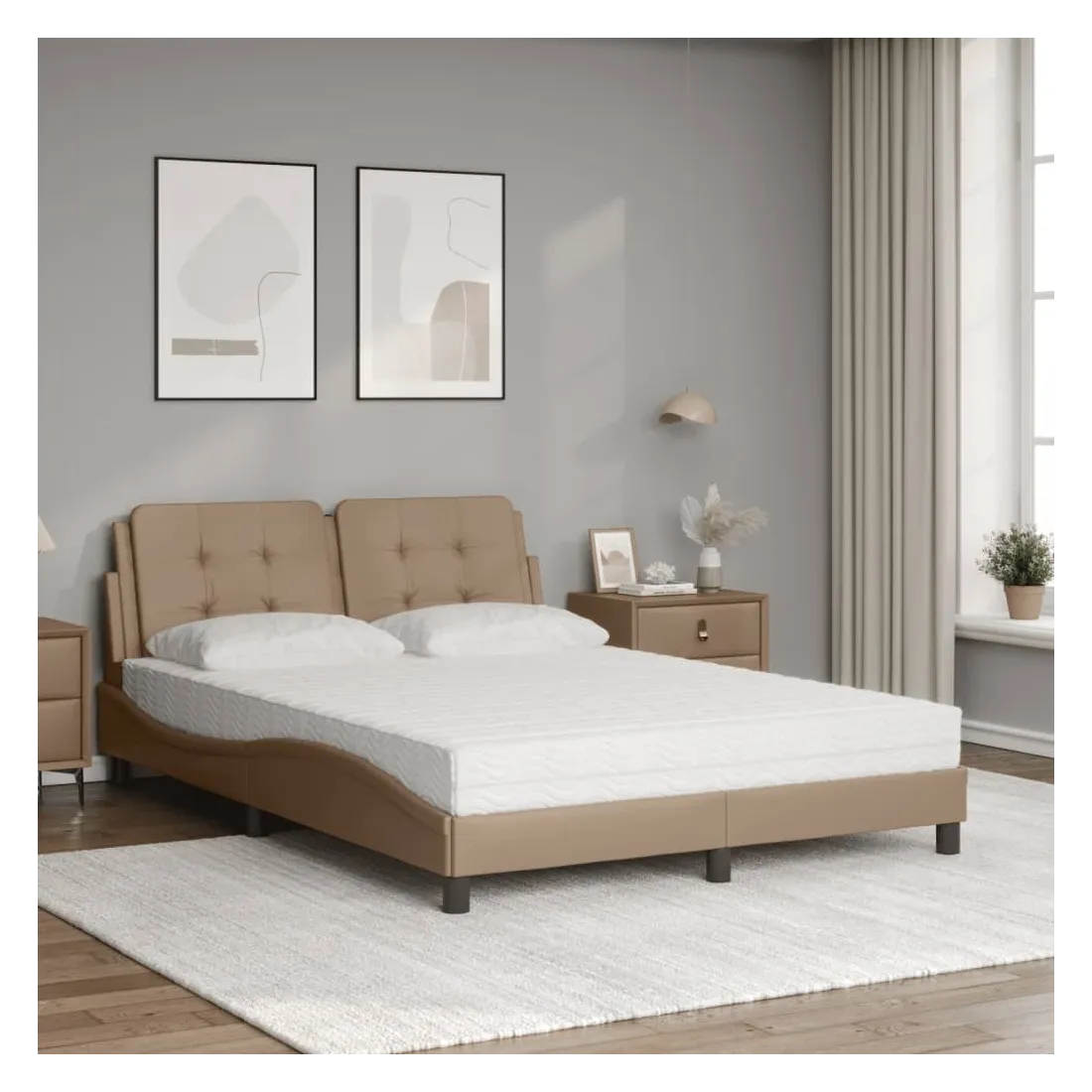 Obtenez une meilleure nuit de sommeil reposante grâce à ce lit avec matelas ! Il est un supplément accueillant à toute chambre à coucher. Similicuir durable : le similicuir de qualité supérieure est un matériau très durable. Il est résistant aux taches, ce qui le rend facile à nettoyer avec un chiffon humide. La surface lisse donne également un aspect luxueux et la beauté du cuir véritable. Lattes de contreplaqué : les lattes de contreplaqué assurent une bonne répartition du poids, garantissant que le matelas reste en place à chaque torsion de votre corps pendant le sommeil. Excellent soutien : l'oreiller de tête de lit est rembourré avec de la mousse pour un confort ultra doux et optimal vous offre un excellent soutien du dos lorsque vous êtes assis dans votre lit pour lire ou regarder la télévision. Matelas en mousse : ce matelas de lit en tissu à 3 couches est rempli de mousse PU 22D pour un confort optimal. Il contribue à soulager la fatigue et à favoriser la circulation sanguine, vous offrant ainsi une relaxation complète et une bonne qualité de sommeil. En outre, le matelas est disponible en dureté H2 et H3, de sorte que vous pouvez simplement tourner le matelas pour choisir la dureté qui vous convient le mieux. Design latéral ondulé : l’aspect ondulé du cadre de lit est élégant et sophistiqué, ajoutant une touche moderne et élégante à votre décor, ce qui en fait le point central de votre chambre à coucher.