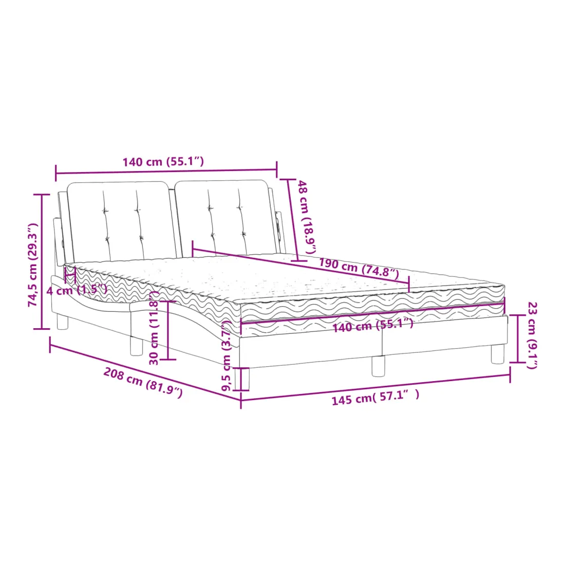- Dimensions totales : 140 x 190 x 17 cm (l x L x é)