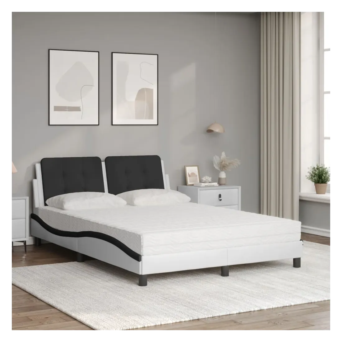 Obtenez une meilleure nuit de sommeil reposante grâce à ce lit avec matelas ! Il est un supplément accueillant à toute chambre à coucher. Similicuir durable : le similicuir de qualité supérieure est un matériau très durable. Il est résistant aux taches, ce qui le rend facile à nettoyer avec un chiffon humide. La surface lisse donne également un aspect luxueux et la beauté du cuir véritable. Lattes de contreplaqué : les lattes de contreplaqué assurent une bonne répartition du poids, garantissant que le matelas reste en place à chaque torsion de votre corps pendant le sommeil. Excellent soutien : l'oreiller de tête de lit est rembourré avec de la mousse pour un confort ultra doux et optimal vous offre un excellent soutien du dos lorsque vous êtes assis dans votre lit pour lire ou regarder la télévision. Matelas en mousse : ce matelas de lit en tissu à 3 couches est rempli de mousse PU 22D pour un confort optimal. Il contribue à soulager la fatigue et à favoriser la circulation sanguine, vous offrant ainsi une relaxation complète et une bonne qualité de sommeil. En outre, le matelas est disponible en dureté H2 et H3, de sorte que vous pouvez simplement tourner le matelas pour choisir la dureté qui vous convient le mieux. Design latéral ondulé : l’aspect ondulé du cadre de lit est élégant et sophistiqué, ajoutant une touche moderne et élégante à votre décor, ce qui en fait le point central de votre chambre à coucher.