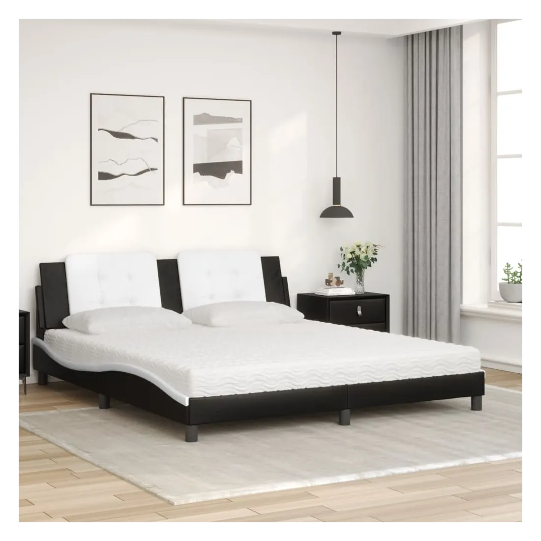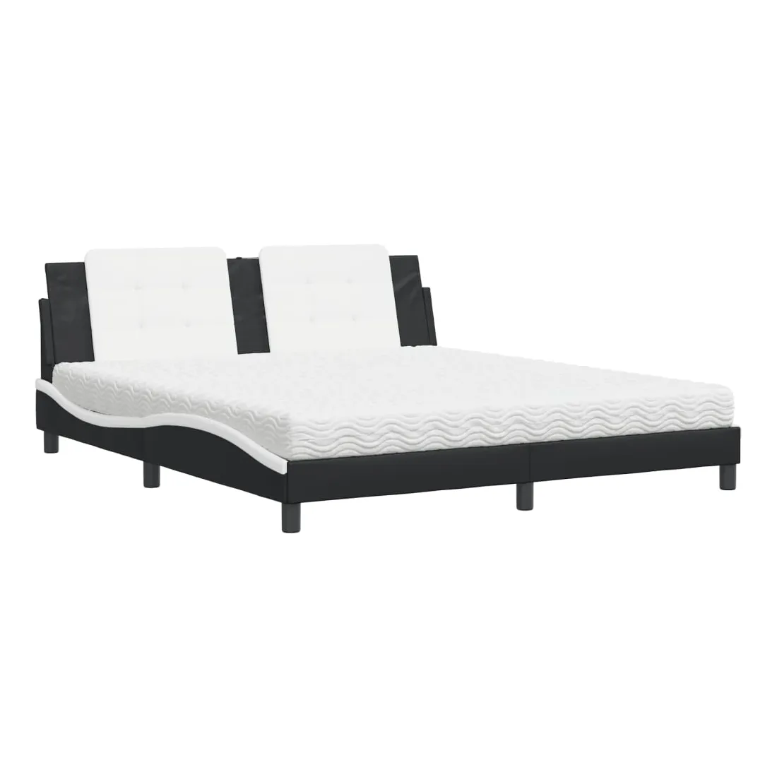 Obtenez une meilleure nuit de sommeil reposante grâce à ce lit avec matelas ! Il est un supplément accueillant à toute chambre à coucher. Similicuir durable : le similicuir de qualité supérieure est un matériau très durable. Il est résistant aux taches, ce qui le rend facile à nettoyer avec un chiffon humide. La surface lisse donne également un aspect luxueux et la beauté du cuir véritable. Lattes de contreplaqué : les lattes de contreplaqué assurent une bonne répartition du poids, garantissant que le matelas reste en place à chaque torsion de votre corps pendant le sommeil. Excellent soutien : l'oreiller de tête de lit est rembourré avec de la mousse pour un confort ultra doux et optimal vous offre un excellent soutien du dos lorsque vous êtes assis dans votre lit pour lire ou regarder la télévision. Matelas en mousse : ce matelas de lit en tissu à 3 couches est rempli de mousse PU 22D pour un confort optimal. Il contribue à soulager la fatigue et à favoriser la circulation sanguine, vous offrant ainsi une relaxation complète et une bonne qualité de sommeil. En outre, le matelas est disponible en dureté H2 et H3, de sorte que vous pouvez simplement tourner le matelas pour choisir la dureté qui vous convient le mieux. Design latéral ondulé : l’aspect ondulé du cadre de lit est élégant et sophistiqué, ajoutant une touche moderne et élégante à votre décor, ce qui en fait le point central de votre chambre à coucher.