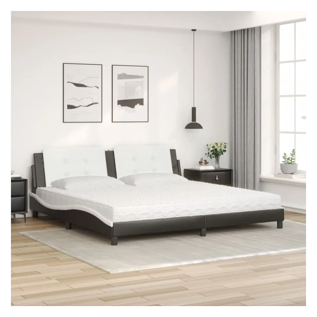 Lit avec matelas Zadar noir et blanc 200x200 cm similicuir
