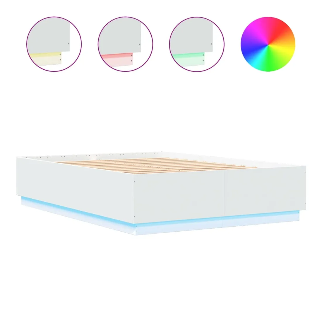 Obtenez une meilleure nuit de sommeil reposante grâce à ce cadre de lit avec lumières LED ! Il est un supplément accueillant à toute chambre à coucher. Matériau durable : le bois d'ingénierie est d'une qualité exceptionnelle avec une surface lisse et présente également résistance, stabilité et résistance à l'humidité.Lumières LED RVB : le cadre de lit est équipé de lumières LED RVB vibrantes. Avec divers menus personnalisables, vous pouvez changer sans effort la couleur des lumières et même les régler automatiquement. Ces lumières LED renforcent non seulement l'aspect contemporain du sommier, mais ajoutent également à son attrait tendance.Lattes robustes : les lattes de contreplaqué assurent une bonne répartition du poids, garantissant que le matelas reste en place à chaque torsion de votre corps pendant le sommeil. Bon à savoir :Un matelas n'est pas inclus avec ce lit. Nous offrons une sélection variée de matelas. Vous pouvez consulter notre boutique pour trouver un matelas assorti.Ce produit est doté d'un connecteur USB qui nécessite une source d'alimentation USB de 5V certifiée (non incluse).
