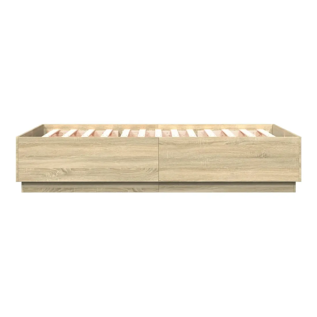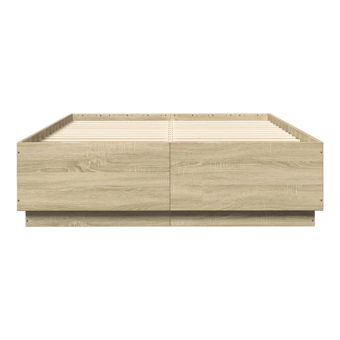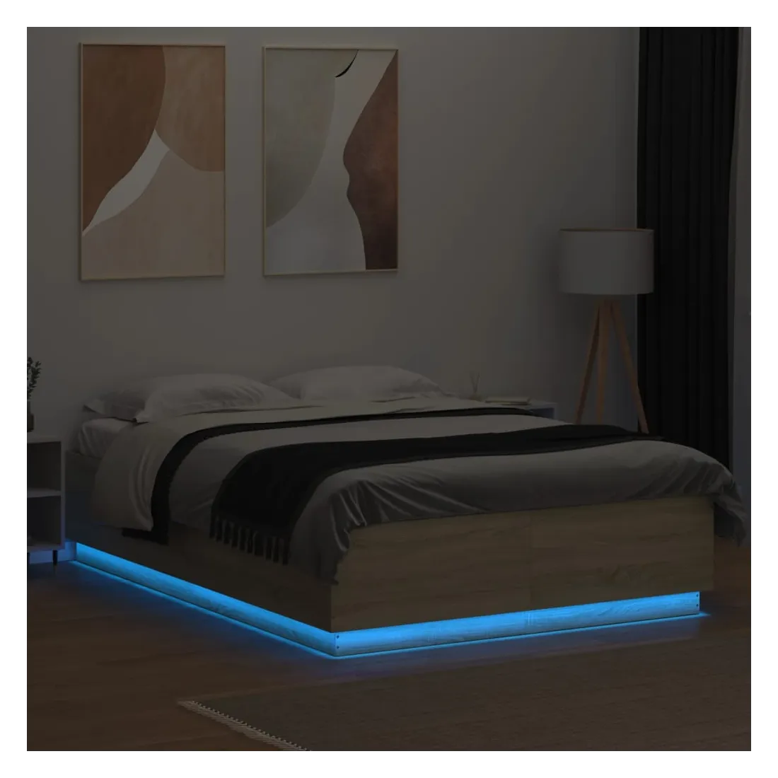 Obtenez une meilleure nuit de sommeil reposante grâce à ce cadre de lit avec lumières LED ! Il est un supplément accueillant à toute chambre à coucher. Matériau durable : le bois d'ingénierie est d'une qualité exceptionnelle avec une surface lisse et présente également résistance, stabilité et résistance à l'humidité.Lumières LED RVB : le cadre de lit est équipé de lumières LED RVB vibrantes. Avec divers menus personnalisables, vous pouvez changer sans effort la couleur des lumières et même les régler automatiquement. Ces lumières LED renforcent non seulement l'aspect contemporain du sommier, mais ajoutent également à son attrait tendance.Lattes robustes : les lattes de contreplaqué assurent une bonne répartition du poids, garantissant que le matelas reste en place à chaque torsion de votre corps pendant le sommeil. Bon à savoir :Un matelas n'est pas inclus avec ce lit. Nous offrons une sélection variée de matelas. Vous pouvez consulter notre boutique pour trouver un matelas assorti.Ce produit est doté d'un connecteur USB qui nécessite une source d'alimentation USB de 5V certifiée (non incluse).
