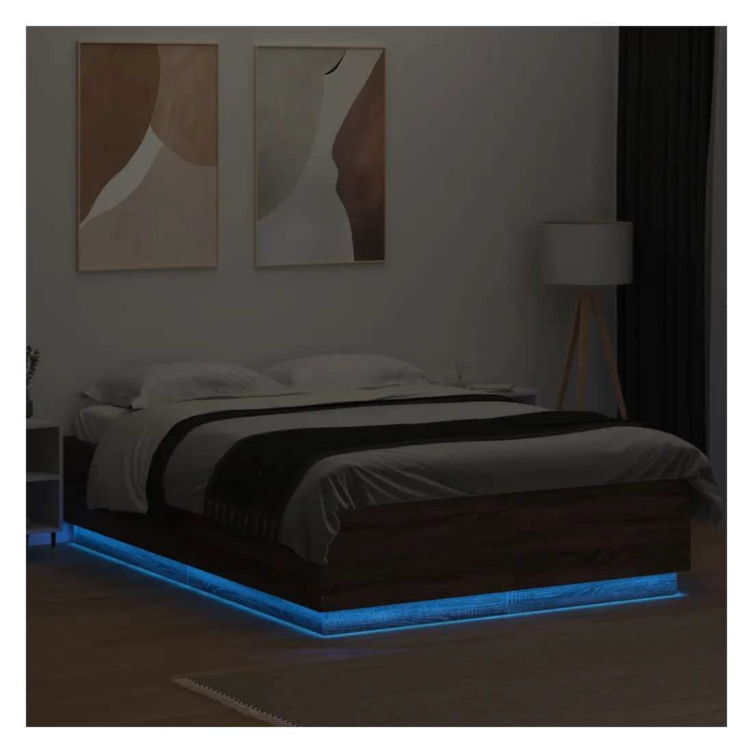 Cadre de lit avec LED sans matelas chêne marron 120x200 cm