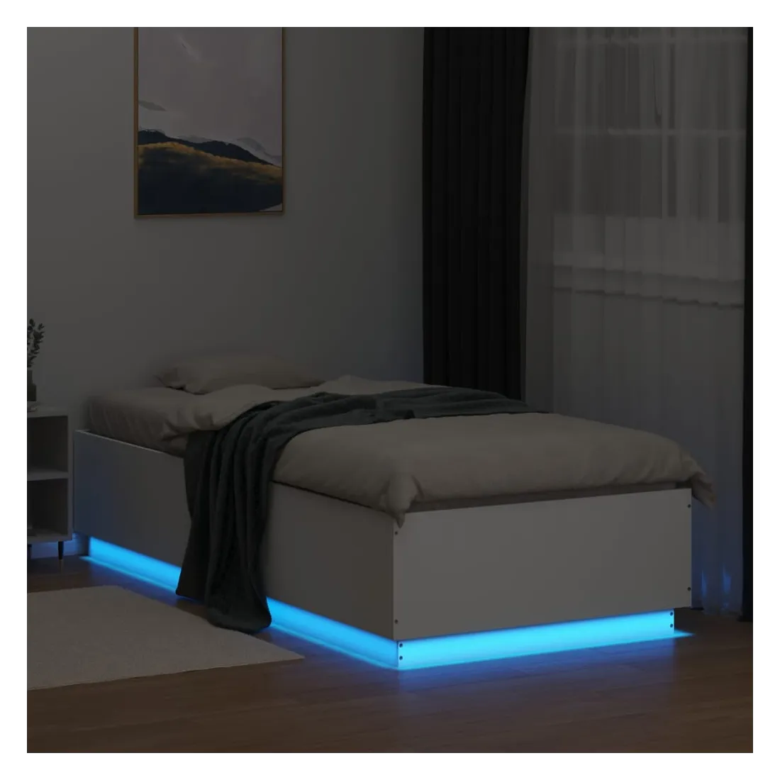 Obtenez une meilleure nuit de sommeil reposante grâce à ce cadre de lit avec lumières LED ! Il est un supplément accueillant à toute chambre à coucher. Matériau durable : le bois d'ingénierie est d'une qualité exceptionnelle avec une surface lisse et présente également résistance, stabilité et résistance à l'humidité.Lumières LED RVB : le cadre de lit est équipé de lumières LED RVB vibrantes. Avec divers menus personnalisables, vous pouvez changer sans effort la couleur des lumières et même les régler automatiquement. Ces lumières LED renforcent non seulement l'aspect contemporain du sommier, mais ajoutent également à son attrait tendance.Lattes robustes : les lattes de contreplaqué assurent une bonne répartition du poids, garantissant que le matelas reste en place à chaque torsion de votre corps pendant le sommeil. Bon à savoir :Un matelas n'est pas inclus avec ce lit. Nous offrons une sélection variée de matelas. Vous pouvez consulter notre boutique pour trouver un matelas assorti.Ce produit est doté d'un connecteur USB qui nécessite une source d'alimentation USB de 5V certifiée (non incluse).