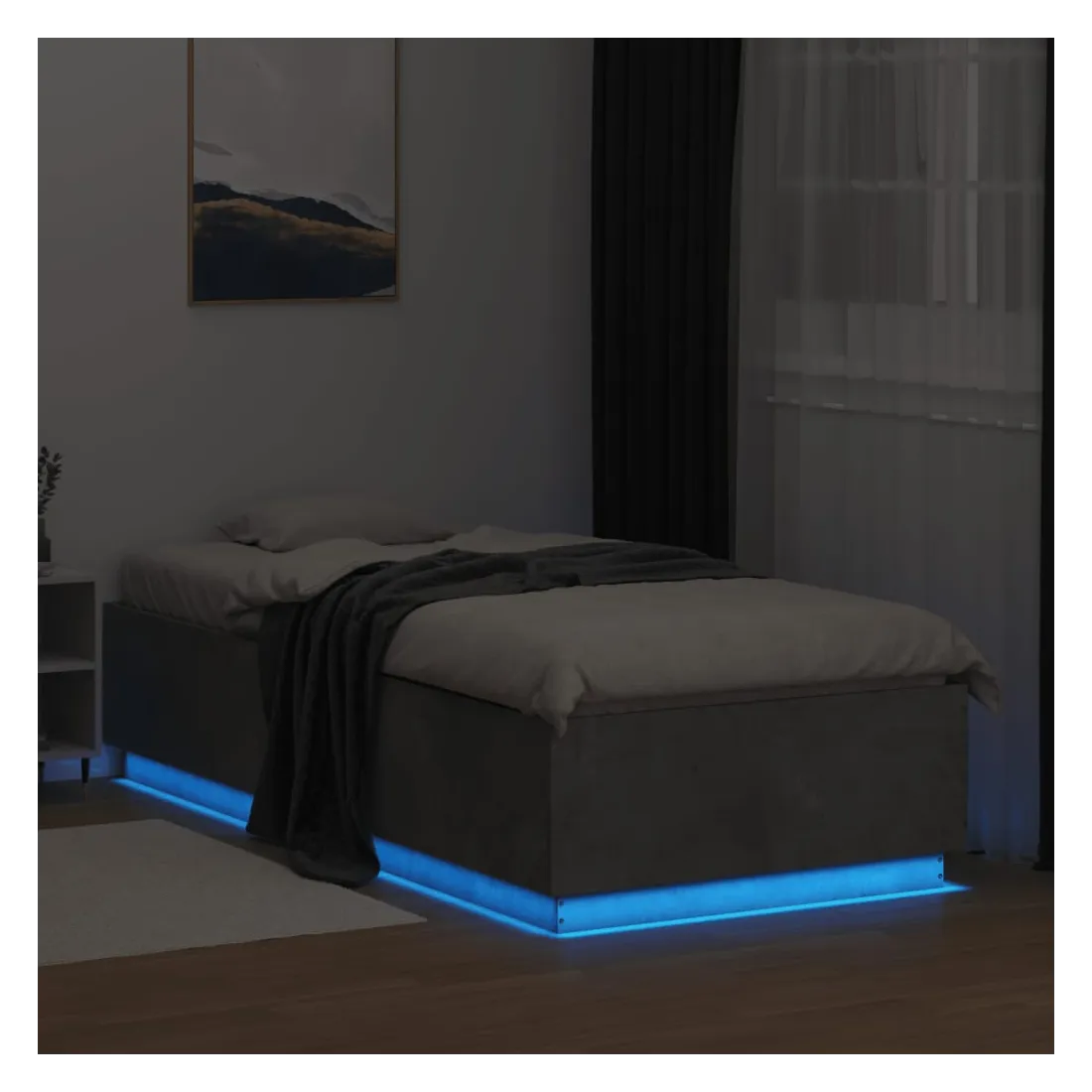 Obtenez une meilleure nuit de sommeil reposante grâce à ce cadre de lit avec lumières LED ! Il est un supplément accueillant à toute chambre à coucher. Matériau durable : le bois d'ingénierie est d'une qualité exceptionnelle avec une surface lisse et présente également résistance, stabilité et résistance à l'humidité.Lumières LED RVB : le cadre de lit est équipé de lumières LED RVB vibrantes. Avec divers menus personnalisables, vous pouvez changer sans effort la couleur des lumières et même les régler automatiquement. Ces lumières LED renforcent non seulement l'aspect contemporain du sommier, mais ajoutent également à son attrait tendance.Lattes robustes : les lattes de contreplaqué assurent une bonne répartition du poids, garantissant que le matelas reste en place à chaque torsion de votre corps pendant le sommeil. Bon à savoir :Un matelas n'est pas inclus avec ce lit. Nous offrons une sélection variée de matelas. Vous pouvez consulter notre boutique pour trouver un matelas assorti.Ce produit est doté d'un connecteur USB qui nécessite une source d'alimentation USB de 5V certifiée (non incluse).