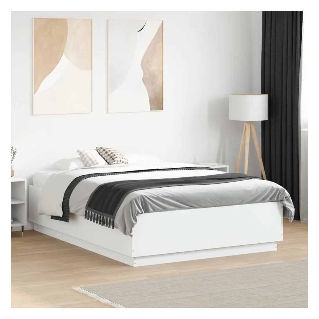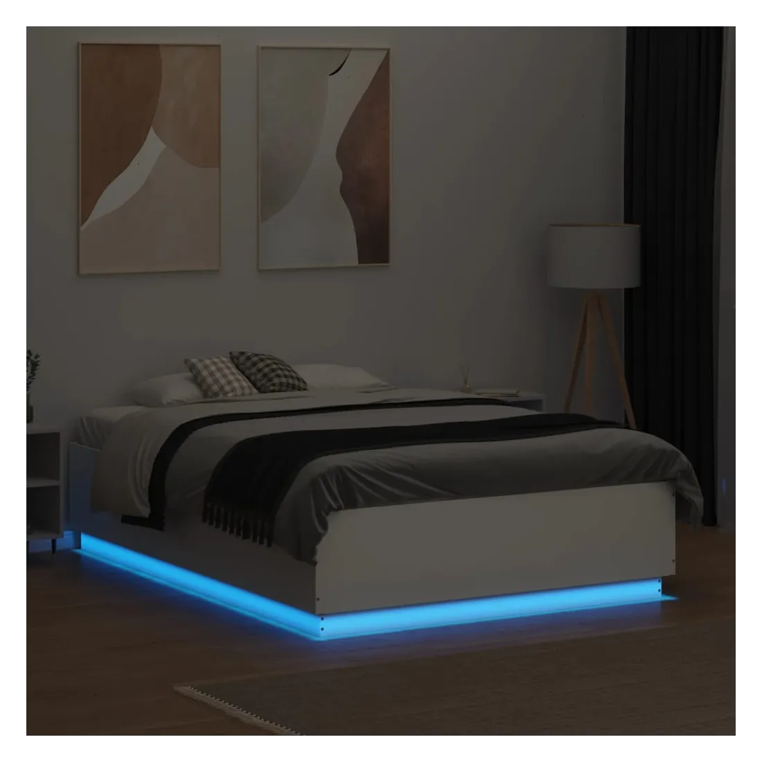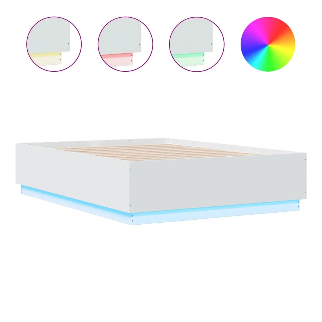 Obtenez une meilleure nuit de sommeil reposante grâce à ce cadre de lit avec lumières LED ! Il est un supplément accueillant à toute chambre à coucher. Matériau durable : le bois d'ingénierie est d'une qualité exceptionnelle avec une surface lisse et présente également résistance, stabilité et résistance à l'humidité.Lumières LED RVB : le cadre de lit est équipé de lumières LED RVB vibrantes. Avec divers menus personnalisables, vous pouvez changer sans effort la couleur des lumières et même les régler automatiquement. Ces lumières LED renforcent non seulement l'aspect contemporain du sommier, mais ajoutent également à son attrait tendance.Lattes robustes : les lattes de contreplaqué assurent une bonne répartition du poids, garantissant que le matelas reste en place à chaque torsion de votre corps pendant le sommeil. Bon à savoir :Un matelas n'est pas inclus avec ce lit. Nous offrons une sélection variée de matelas. Vous pouvez consulter notre boutique pour trouver un matelas assorti.Ce produit est doté d'un connecteur USB qui nécessite une source d'alimentation USB de 5V certifiée (non incluse).