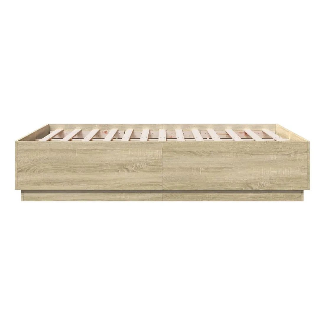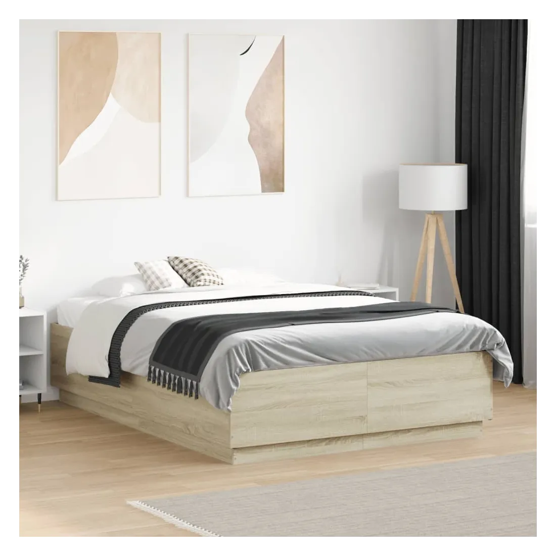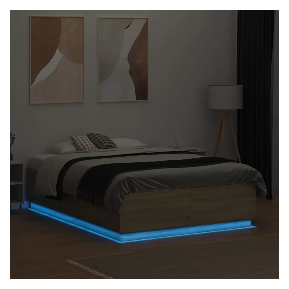 Obtenez une meilleure nuit de sommeil reposante grâce à ce cadre de lit avec lumières LED ! Il est un supplément accueillant à toute chambre à coucher. Matériau durable : le bois d'ingénierie est d'une qualité exceptionnelle avec une surface lisse et présente également résistance, stabilité et résistance à l'humidité.Lumières LED RVB : le cadre de lit est équipé de lumières LED RVB vibrantes. Avec divers menus personnalisables, vous pouvez changer sans effort la couleur des lumières et même les régler automatiquement. Ces lumières LED renforcent non seulement l'aspect contemporain du sommier, mais ajoutent également à son attrait tendance.Lattes robustes : les lattes de contreplaqué assurent une bonne répartition du poids, garantissant que le matelas reste en place à chaque torsion de votre corps pendant le sommeil. Bon à savoir :Un matelas n'est pas inclus avec ce lit. Nous offrons une sélection variée de matelas. Vous pouvez consulter notre boutique pour trouver un matelas assorti.Ce produit est doté d'un connecteur USB qui nécessite une source d'alimentation USB de 5V certifiée (non incluse).