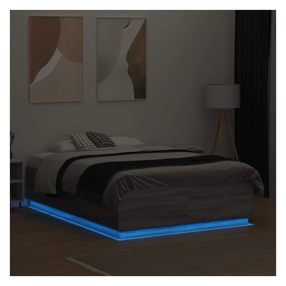 Obtenez une meilleure nuit de sommeil reposante grâce à ce cadre de lit avec lumières LED ! Il est un supplément accueillant à toute chambre à coucher. Matériau durable : le bois d'ingénierie est d'une qualité exceptionnelle avec une surface lisse et présente également résistance, stabilité et résistance à l'humidité.Lumières LED RVB : le cadre de lit est équipé de lumières LED RVB vibrantes. Avec divers menus personnalisables, vous pouvez changer sans effort la couleur des lumières et même les régler automatiquement. Ces lumières LED renforcent non seulement l'aspect contemporain du sommier, mais ajoutent également à son attrait tendance.Lattes robustes : les lattes de contreplaqué assurent une bonne répartition du poids, garantissant que le matelas reste en place à chaque torsion de votre corps pendant le sommeil. Bon à savoir :Un matelas n'est pas inclus avec ce lit. Nous offrons une sélection variée de matelas. Vous pouvez consulter notre boutique pour trouver un matelas assorti.Ce produit est doté d'un connecteur USB qui nécessite une source d'alimentation USB de 5V certifiée (non incluse).