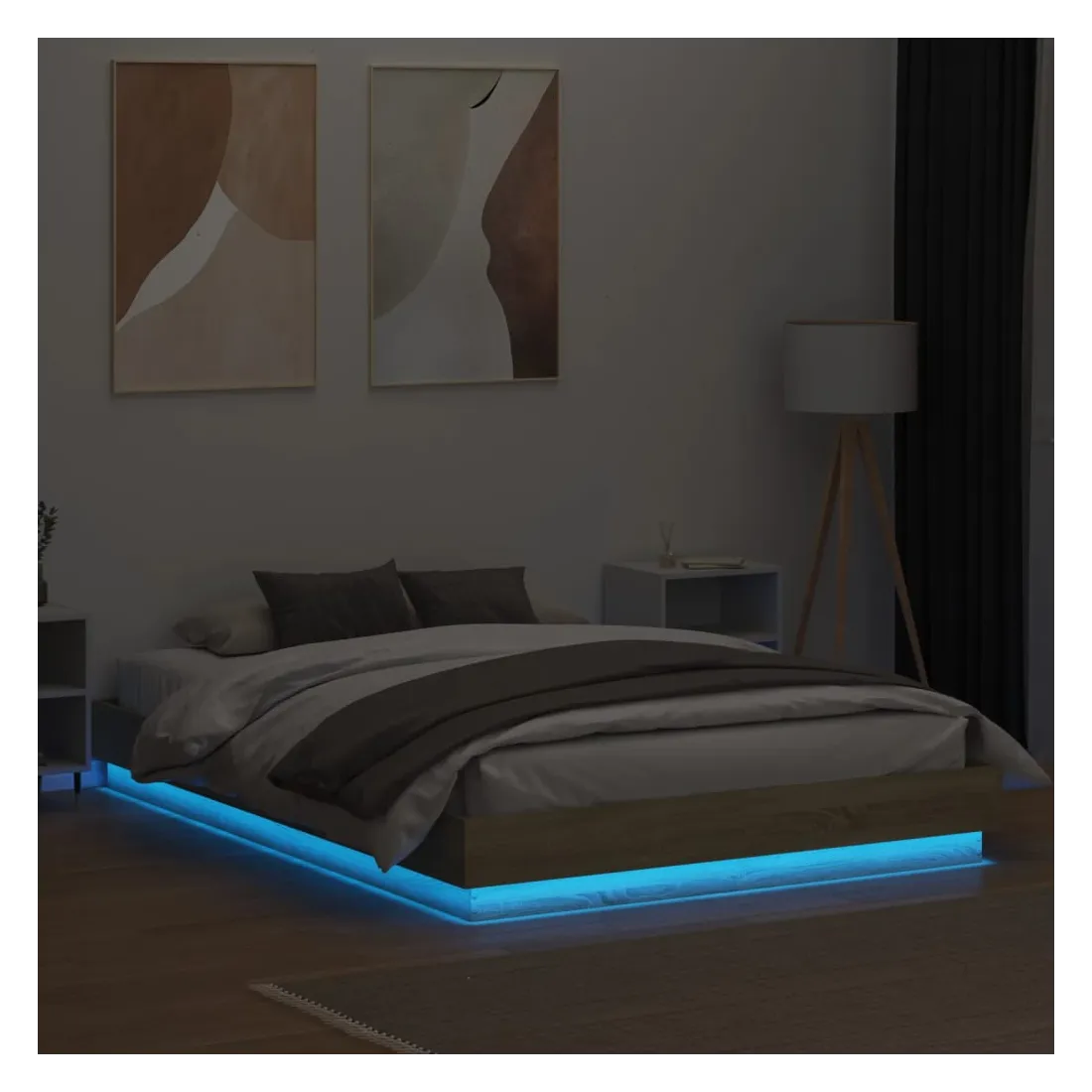 Obtenez une meilleure nuit de sommeil reposante grâce à ce cadre de lit avec lumières LED ! Il est un supplément accueillant à toute chambre à coucher. Matériau durable : le bois d'ingénierie est d'une qualité exceptionnelle avec une surface lisse et présente également résistance, stabilité et résistance à l'humidité.Lumières LED RVB : le cadre de lit est équipé de lumières LED RVB vibrantes. Avec divers menus personnalisables, vous pouvez changer sans effort la couleur des lumières et même les régler automatiquement. Ces lumières LED renforcent non seulement l'aspect contemporain du sommier, mais ajoutent également à son attrait tendance.Lattes robustes : les lattes de contreplaqué assurent une bonne répartition du poids, garantissant que le matelas reste en place à chaque torsion de votre corps pendant le sommeil. Bon à savoir :Un matelas n'est pas inclus avec ce lit. Nous offrons une sélection variée de matelas. Vous pouvez consulter notre boutique pour trouver un matelas assorti.Ce produit est doté d'un connecteur USB qui nécessite une source d'alimentation USB de 5V certifiée (non incluse).