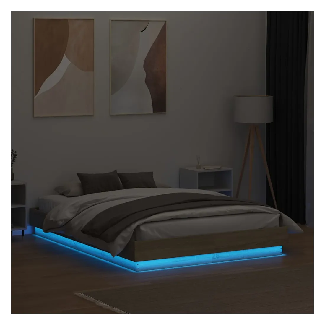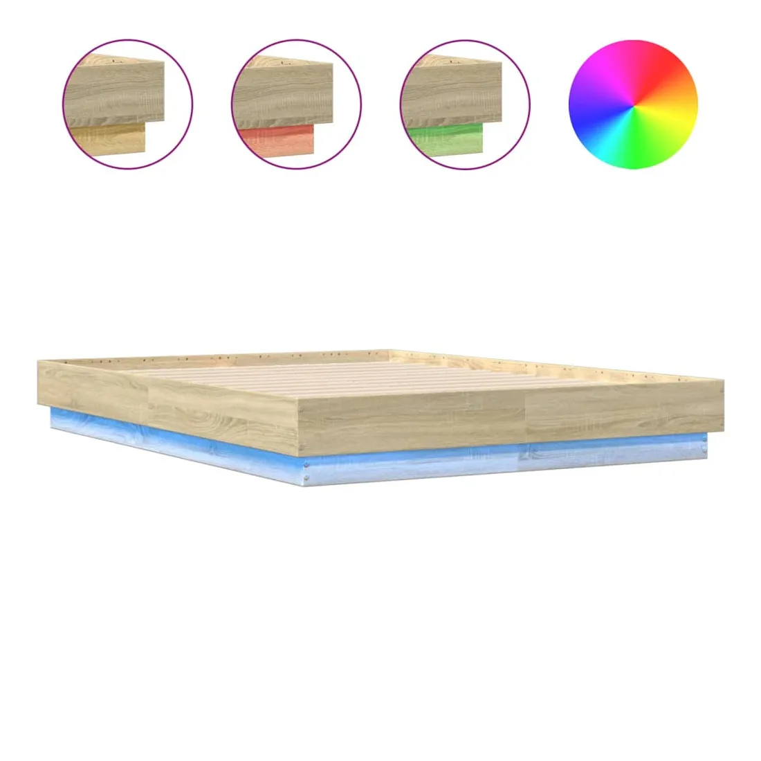 Obtenez une meilleure nuit de sommeil reposante grâce à ce cadre de lit avec lumières LED ! Il est un supplément accueillant à toute chambre à coucher. Matériau durable : le bois d'ingénierie est d'une qualité exceptionnelle avec une surface lisse et présente également résistance, stabilité et résistance à l'humidité.Lumières LED RVB : le cadre de lit est équipé de lumières LED RVB vibrantes. Avec divers menus personnalisables, vous pouvez changer sans effort la couleur des lumières et même les régler automatiquement. Ces lumières LED renforcent non seulement l'aspect contemporain du sommier, mais ajoutent également à son attrait tendance.Lattes robustes : les lattes de contreplaqué assurent une bonne répartition du poids, garantissant que le matelas reste en place à chaque torsion de votre corps pendant le sommeil. Bon à savoir :Un matelas n'est pas inclus avec ce lit. Nous offrons une sélection variée de matelas. Vous pouvez consulter notre boutique pour trouver un matelas assorti.Ce produit est doté d'un connecteur USB qui nécessite une source d'alimentation USB de 5V certifiée (non incluse).