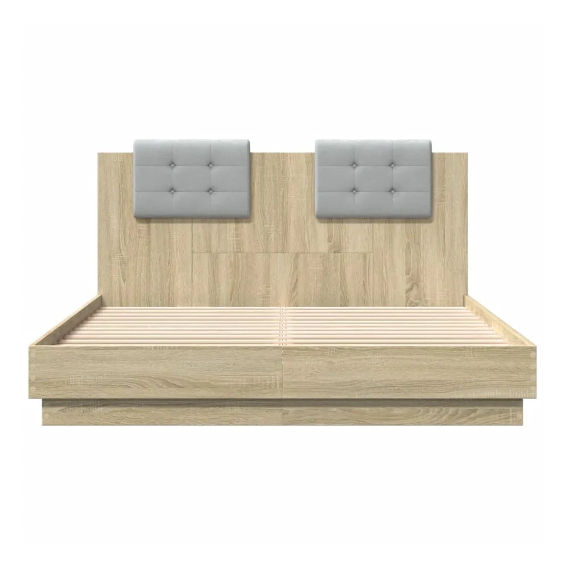 Obtenez une meilleure nuit de sommeil reposante grâce à ce cadre de lit avec tête de lit ! Il est un supplément accueillant à toute chambre à coucher. Matériau durable : le bois d'ingénierie est d'une qualité exceptionnelle avec une surface lisse et présente également résistance, stabilité et résistance à l'humidité.Lattes de contreplaqué : les lattes de contreplaqué assurent une bonne répartition du poids, garantissant que le matelas reste en place à chaque torsion de votre corps pendant le sommeil.Excellent soutien : l'oreiller de tête de lit est rembourré avec de la mousse pour un confort ultra doux et optimal vous offre un excellent soutien du dos lorsque vous êtes assis dans votre lit pour lire ou regarder la télévision. Bon à savoir :Un matelas n'est pas inclus avec ce lit. Nous offrons une sélection variée de matelas. Vous pouvez consulter notre boutique pour trouver un matelas assorti.