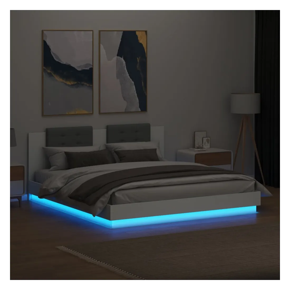 Obtenez une meilleure nuit de sommeil reposante grâce à ce cadre de lit avec tête de lit et lumières LED ! Il est un supplément accueillant à toute chambre à coucher. Matériau durable : le bois d'ingénierie est d'une qualité exceptionnelle avec une surface lisse et présente également résistance, stabilité et résistance à l'humidité.Lumières LED RVB : le cadre de lit est équipé de lumières LED RVB vibrantes. Avec divers menus personnalisables, vous pouvez changer sans effort la couleur des lumières et même les régler automatiquement. Ces lumières LED renforcent non seulement l'aspect contemporain du sommier, mais ajoutent également à son attrait tendance.Excellent soutien : la tête de lit vous offre un excellent soutien du dos lorsque vous êtes assis dans votre lit pour lire ou regarder la télévision.Lattes robustes : les lattes de contreplaqué assurent une bonne répartition du poids, garantissant que le matelas reste en place à chaque torsion de votre corps pendant le sommeil. Bon à savoir :Un matelas n'est pas inclus avec ce lit. Nous offrons une sélection variée de matelas. Vous pouvez consulter notre boutique pour trouver un matelas assorti.Ce produit est doté d'un connecteur USB qui nécessite une source d'alimentation USB de 5V certifiée (non incluse).