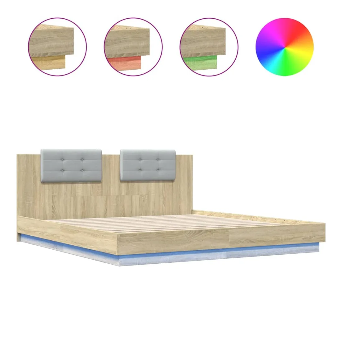 Obtenez une meilleure nuit de sommeil reposante grâce à ce cadre de lit avec tête de lit et lumières LED ! Il est un supplément accueillant à toute chambre à coucher. Matériau durable : le bois d'ingénierie est d'une qualité exceptionnelle avec une surface lisse et présente également résistance, stabilité et résistance à l'humidité.Lumières LED RVB : le cadre de lit est équipé de lumières LED RVB vibrantes. Avec divers menus personnalisables, vous pouvez changer sans effort la couleur des lumières et même les régler automatiquement. Ces lumières LED renforcent non seulement l'aspect contemporain du sommier, mais ajoutent également à son attrait tendance.Excellent soutien : la tête de lit vous offre un excellent soutien du dos lorsque vous êtes assis dans votre lit pour lire ou regarder la télévision.Lattes robustes : les lattes de contreplaqué assurent une bonne répartition du poids, garantissant que le matelas reste en place à chaque torsion de votre corps pendant le sommeil. Bon à savoir :Un matelas n'est pas inclus avec ce lit. Nous offrons une sélection variée de matelas. Vous pouvez consulter notre boutique pour trouver un matelas assorti.Ce produit est doté d'un connecteur USB qui nécessite une source d'alimentation USB de 5V certifiée (non incluse).