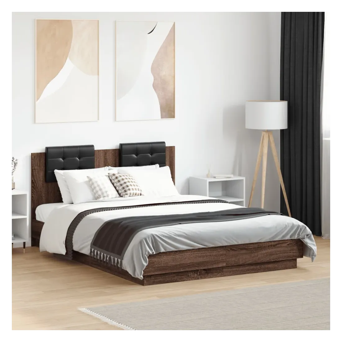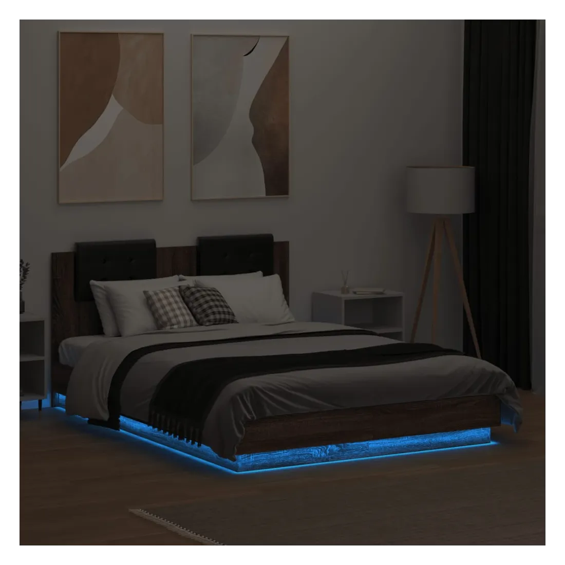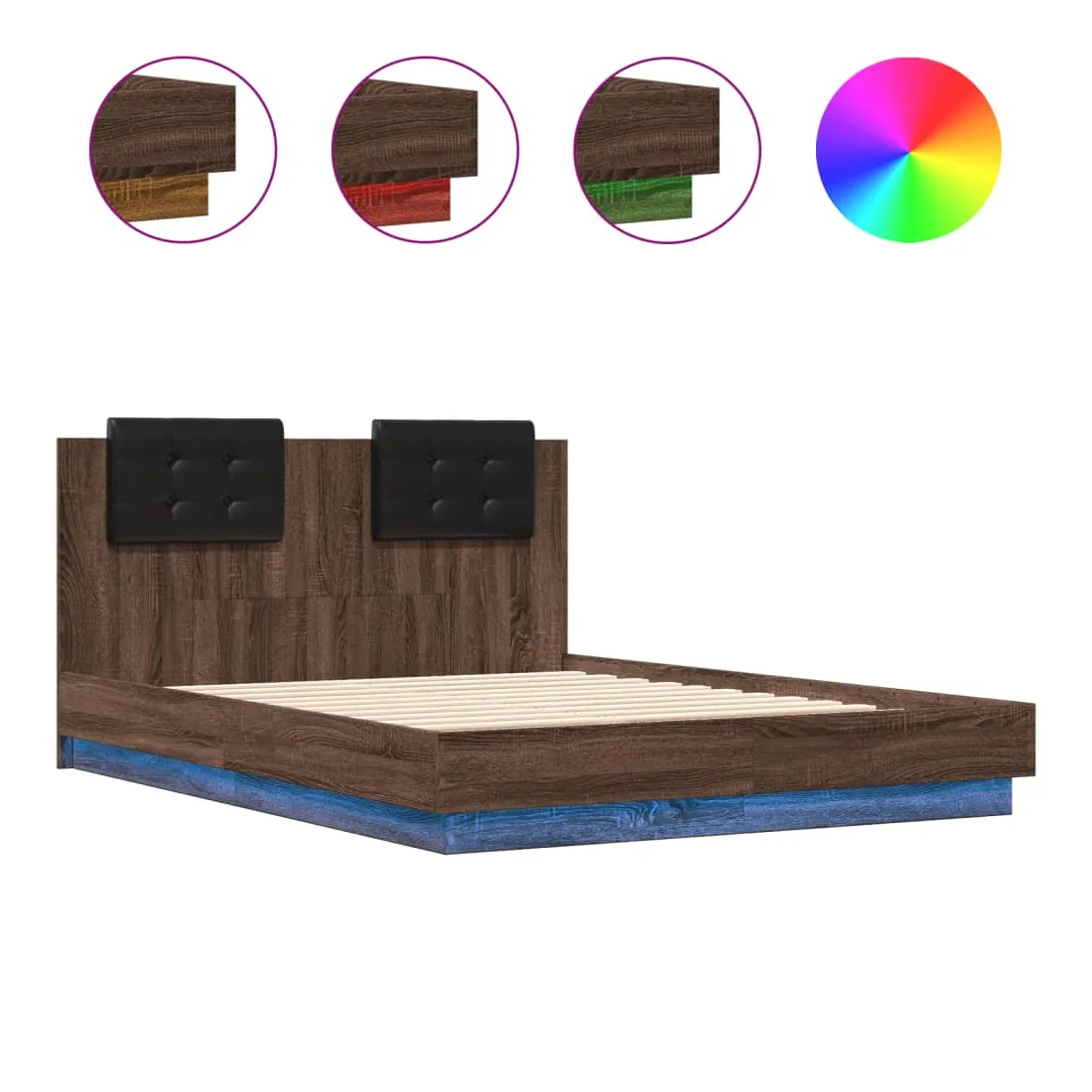 Cadre de lit avec LED sans matelas chêne marron 135x190 cm