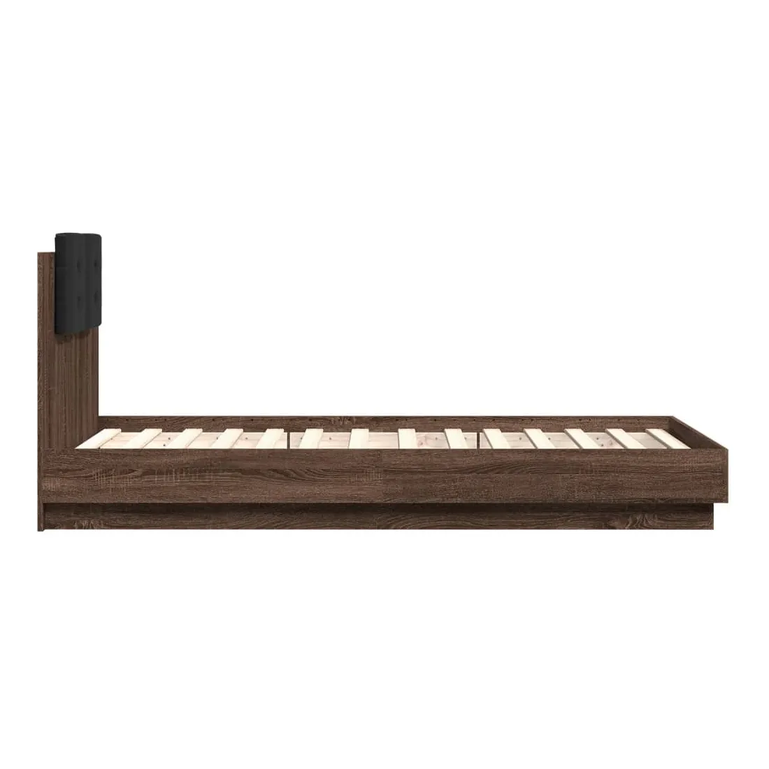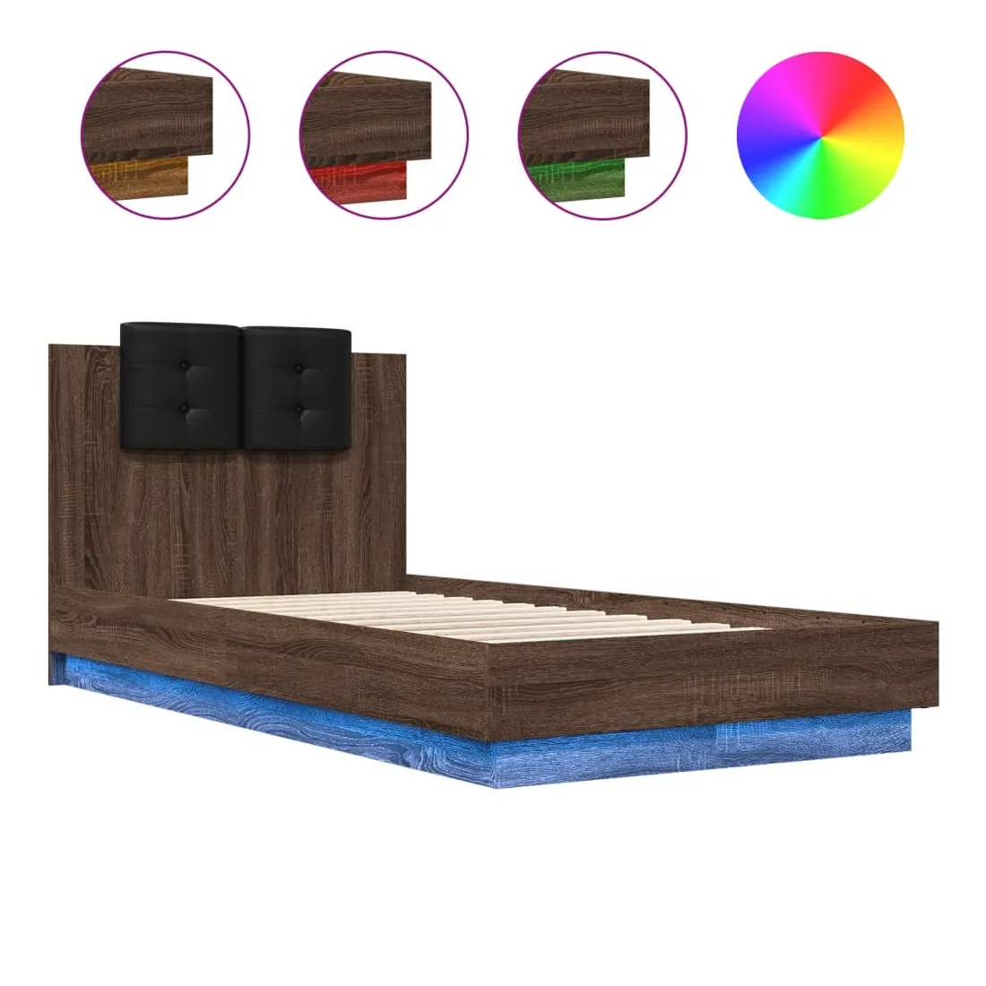 Obtenez une meilleure nuit de sommeil reposante grâce à ce cadre de lit avec tête de lit et lumières LED ! Il est un supplément accueillant à toute chambre à coucher. Matériau durable : le bois d'ingénierie est d'une qualité exceptionnelle avec une surface lisse et présente également résistance, stabilité et résistance à l'humidité.Lumières LED RVB : le cadre de lit est équipé de lumières LED RVB vibrantes. Avec divers menus personnalisables, vous pouvez changer sans effort la couleur des lumières et même les régler automatiquement. Ces lumières LED renforcent non seulement l'aspect contemporain du sommier, mais ajoutent également à son attrait tendance.Excellent soutien : la tête de lit vous offre un excellent soutien du dos lorsque vous êtes assis dans votre lit pour lire ou regarder la télévision.Lattes robustes : les lattes de contreplaqué assurent une bonne répartition du poids, garantissant que le matelas reste en place à chaque torsion de votre corps pendant le sommeil. Bon à savoir :Un matelas n'est pas inclus avec ce lit. Nous offrons une sélection variée de matelas. Vous pouvez consulter notre boutique pour trouver un matelas assorti.Ce produit est doté d'un connecteur USB qui nécessite une source d'alimentation USB de 5V certifiée (non incluse).