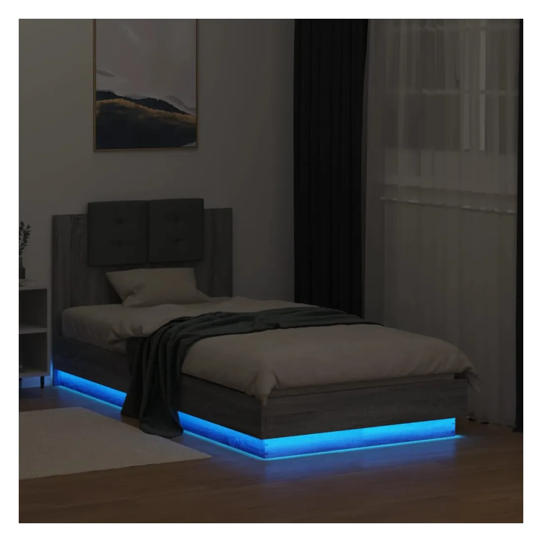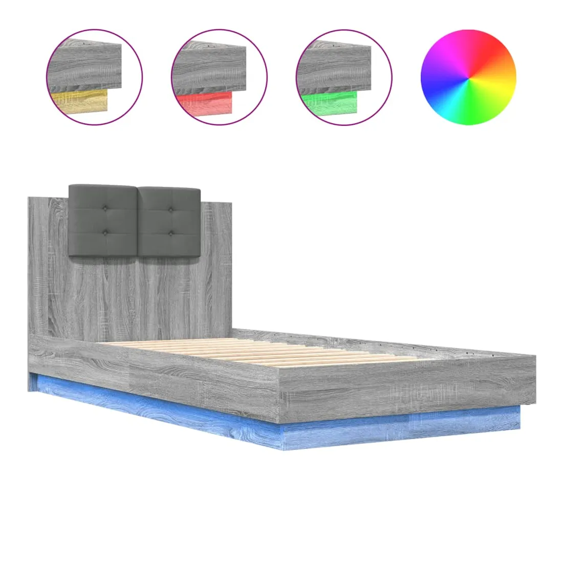 Obtenez une meilleure nuit de sommeil reposante grâce à ce cadre de lit avec tête de lit et lumières LED ! Il est un supplément accueillant à toute chambre à coucher. Matériau durable : le bois d'ingénierie est d'une qualité exceptionnelle avec une surface lisse et présente également résistance, stabilité et résistance à l'humidité.Lumières LED RVB : le cadre de lit est équipé de lumières LED RVB vibrantes. Avec divers menus personnalisables, vous pouvez changer sans effort la couleur des lumières et même les régler automatiquement. Ces lumières LED renforcent non seulement l'aspect contemporain du sommier, mais ajoutent également à son attrait tendance.Excellent soutien : la tête de lit vous offre un excellent soutien du dos lorsque vous êtes assis dans votre lit pour lire ou regarder la télévision.Lattes robustes : les lattes de contreplaqué assurent une bonne répartition du poids, garantissant que le matelas reste en place à chaque torsion de votre corps pendant le sommeil. Bon à savoir :Un matelas n'est pas inclus avec ce lit. Nous offrons une sélection variée de matelas. Vous pouvez consulter notre boutique pour trouver un matelas assorti.Ce produit est doté d'un connecteur USB qui nécessite une source d'alimentation USB de 5V certifiée (non incluse).