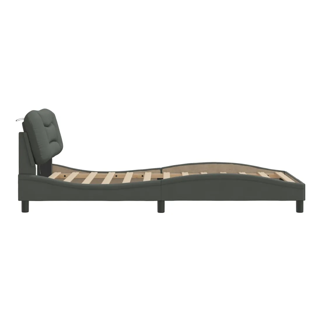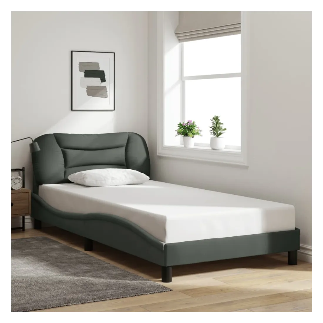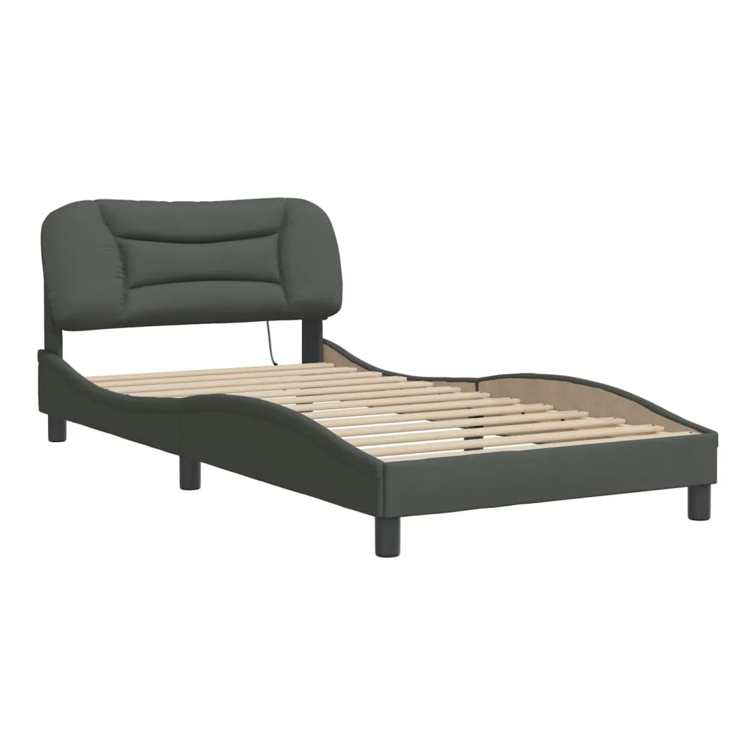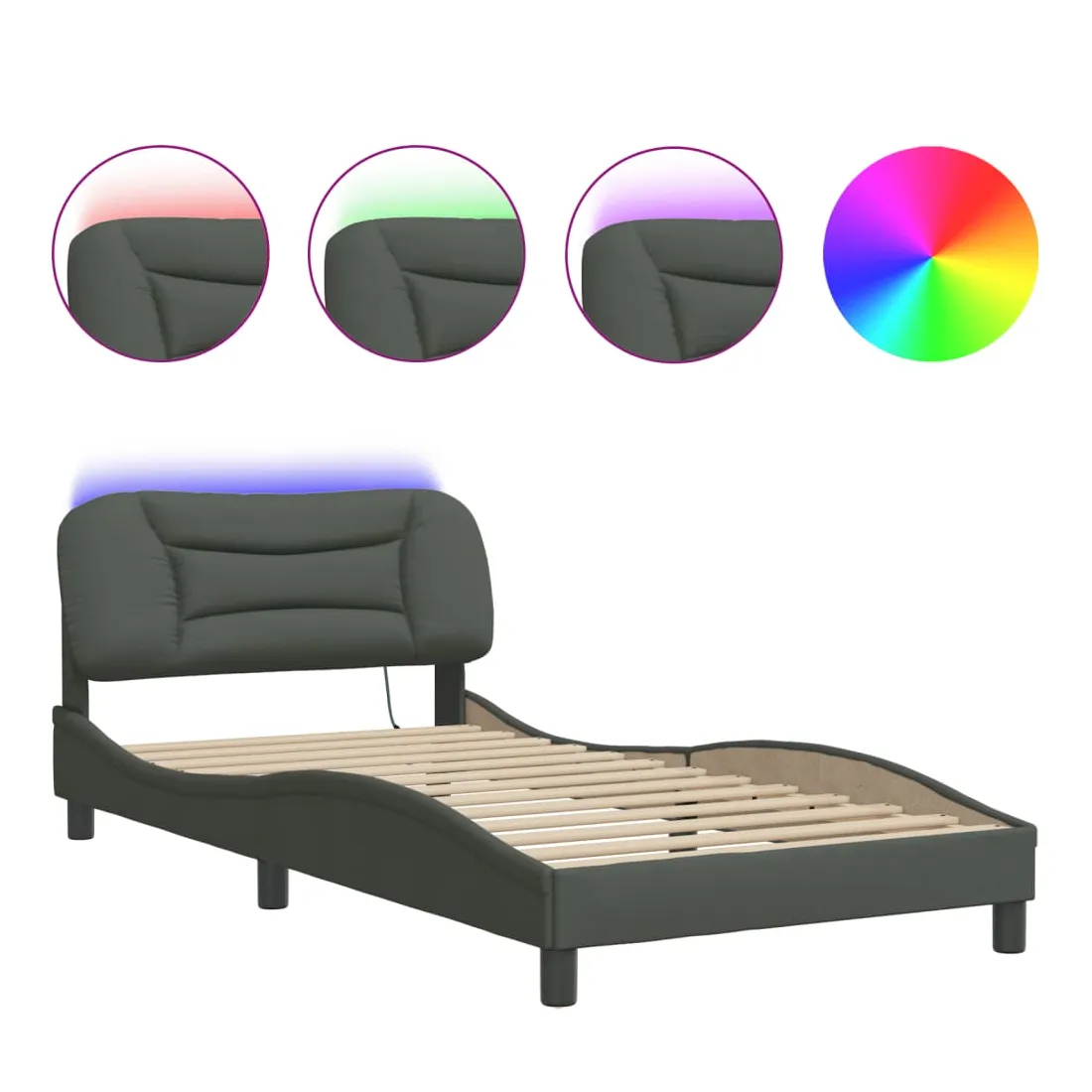 Obtenez une meilleure nuit de sommeil reposante grâce à ce cadre de lit avec lumières LED ! Il est un supplément accueillant à toute chambre à coucher. Tissu durable : le tissu présente un aspect simple et épuré, et il est respirant et durable.Lattes de contreplaqué : les lattes de contreplaqué assurent une bonne répartition du poids, garantissant que le matelas reste en place à chaque torsion de votre corps pendant le sommeil.Excellent soutien : la tête de lit vous offre un excellent soutien du dos lorsque vous êtes assis dans votre lit pour lire ou regarder la télévision.Bande LED colorée : apportez de la gaieté dans l'obscurité avec des lumières LED colorées ! Les bandes auto-agrippantes situées à l'arrière du coussin de la tête de lit peuvent être utilisées pour fixer les lumières LED.Design latéral ondulé : l’aspect ondulé du cadre de lit est élégant et sophistiqué, ajoutant une touche moderne et élégante à votre décor, ce qui en fait le point central de votre chambre à coucher. Bon à savoir :Un matelas n'est pas inclus avec ce lit. Nous offrons une sélection variée de matelas. Vous pouvez consulter notre boutique pour trouver un matelas assorti.Ce produit est doté d'un connecteur USB qui nécessite une source d'alimentation USB de 5V certifiée (non incluse).