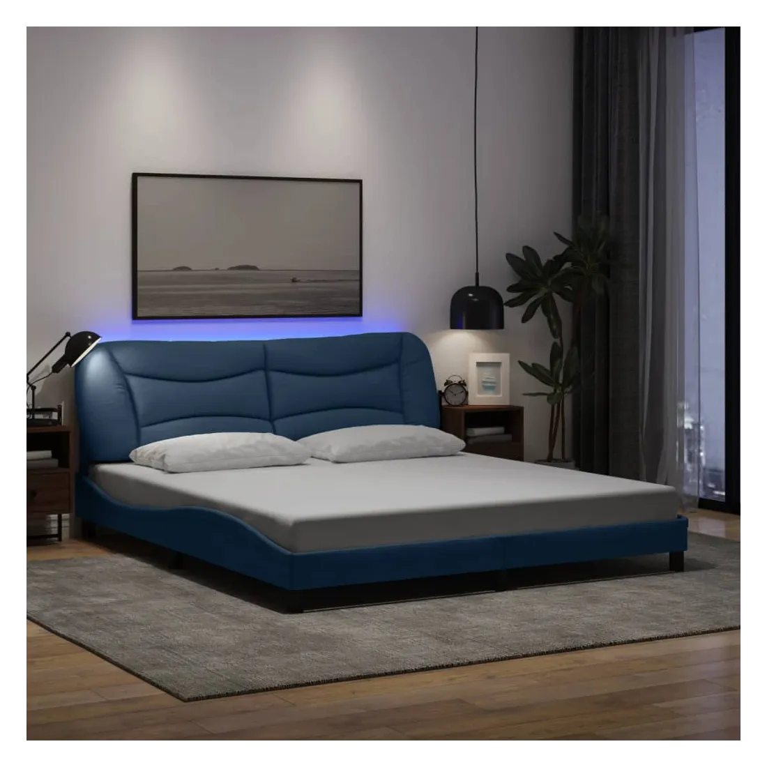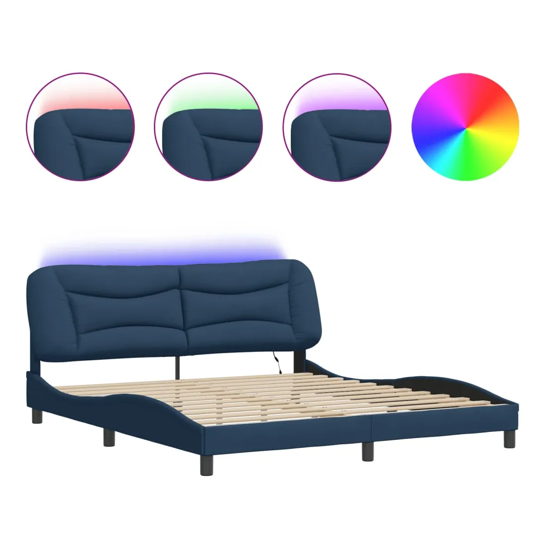 Obtenez une meilleure nuit de sommeil reposante grâce à ce cadre de lit avec lumières LED ! Il est un supplément accueillant à toute chambre à coucher. Tissu durable : le tissu présente un aspect simple et épuré, et il est respirant et durable.Lattes de contreplaqué : les lattes de contreplaqué assurent une bonne répartition du poids, garantissant que le matelas reste en place à chaque torsion de votre corps pendant le sommeil.Excellent soutien : la tête de lit vous offre un excellent soutien du dos lorsque vous êtes assis dans votre lit pour lire ou regarder la télévision.Bande LED colorée : apportez de la gaieté dans l'obscurité avec des lumières LED colorées ! Les bandes auto-agrippantes situées à l'arrière du coussin de la tête de lit peuvent être utilisées pour fixer les lumières LED.Design latéral ondulé : l’aspect ondulé du cadre de lit est élégant et sophistiqué, ajoutant une touche moderne et élégante à votre décor, ce qui en fait le point central de votre chambre à coucher. Bon à savoir :Un matelas n'est pas inclus avec ce lit. Nous offrons une sélection variée de matelas. Vous pouvez consulter notre boutique pour trouver un matelas assorti.Ce produit est doté d'un connecteur USB qui nécessite une source d'alimentation USB de 5V certifiée (non incluse).
