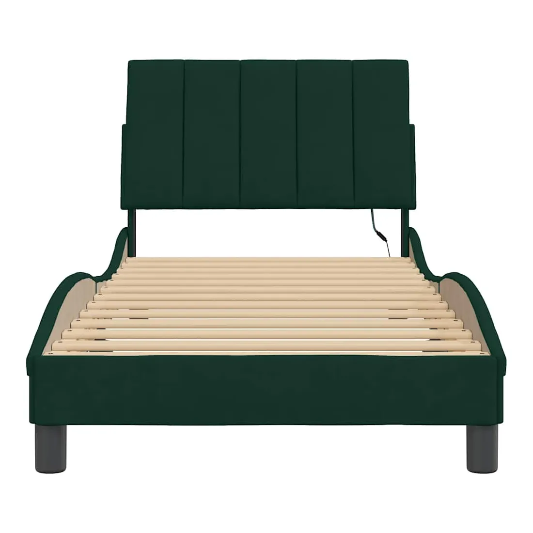 Obtenez une meilleure nuit de sommeil reposante grâce à ce cadre de lit avec lumières LED ! Il est un supplément accueillant à toute chambre à coucher. Velours doux : le velours est un tissu doux et confortable, agréable au toucher.Lattes de contreplaqué : les lattes de contreplaqué assurent une bonne répartition du poids, garantissant que le matelas reste en place à chaque torsion de votre corps pendant le sommeil.Excellent soutien : la tête de lit vous offre un excellent soutien du dos lorsque vous êtes assis dans votre lit pour lire ou regarder la télévision.Bande LED colorée : apportez de la gaieté dans l'obscurité avec des lumières LED colorées ! Les bandes auto-agrippantes situées à l'arrière du coussin de la tête de lit peuvent être utilisées pour fixer les lumières LED.Design latéral ondulé : l’aspect ondulé du cadre de lit est élégant et sophistiqué, ajoutant une touche moderne et élégante à votre décor, ce qui en fait le point central de votre chambre à coucher. Bon à savoir :Un matelas n'est pas inclus avec ce lit. Nous offrons une sélection variée de matelas. Vous pouvez consulter notre boutique pour trouver un matelas assorti.Ce produit est doté d'un connecteur USB qui nécessite une source d'alimentation USB de 5V certifiée (non incluse).