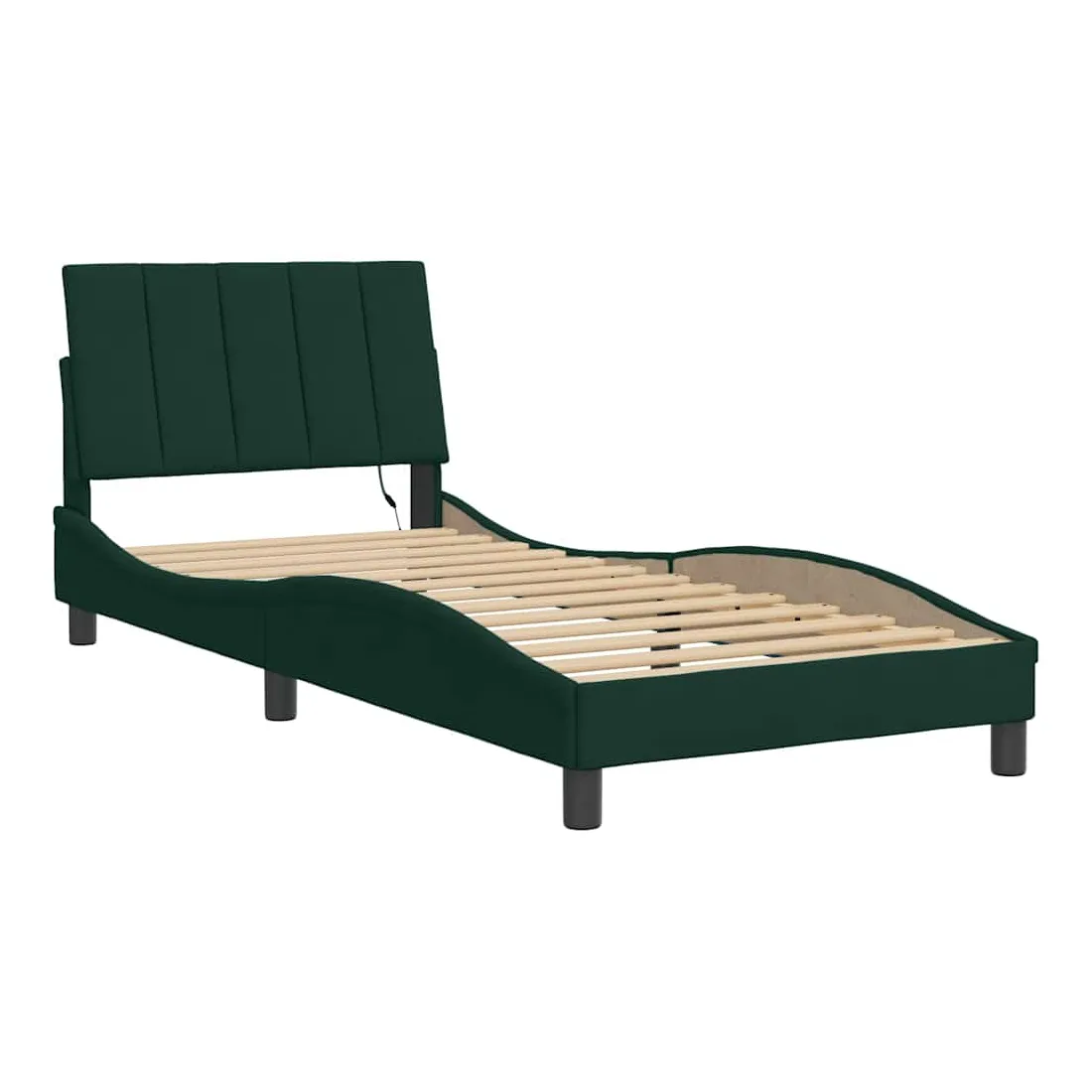 Obtenez une meilleure nuit de sommeil reposante grâce à ce cadre de lit avec lumières LED ! Il est un supplément accueillant à toute chambre à coucher. Velours doux : le velours est un tissu doux et confortable, agréable au toucher.Lattes de contreplaqué : les lattes de contreplaqué assurent une bonne répartition du poids, garantissant que le matelas reste en place à chaque torsion de votre corps pendant le sommeil.Excellent soutien : la tête de lit vous offre un excellent soutien du dos lorsque vous êtes assis dans votre lit pour lire ou regarder la télévision.Bande LED colorée : apportez de la gaieté dans l'obscurité avec des lumières LED colorées ! Les bandes auto-agrippantes situées à l'arrière du coussin de la tête de lit peuvent être utilisées pour fixer les lumières LED.Design latéral ondulé : l’aspect ondulé du cadre de lit est élégant et sophistiqué, ajoutant une touche moderne et élégante à votre décor, ce qui en fait le point central de votre chambre à coucher. Bon à savoir :Un matelas n'est pas inclus avec ce lit. Nous offrons une sélection variée de matelas. Vous pouvez consulter notre boutique pour trouver un matelas assorti.Ce produit est doté d'un connecteur USB qui nécessite une source d'alimentation USB de 5V certifiée (non incluse).
