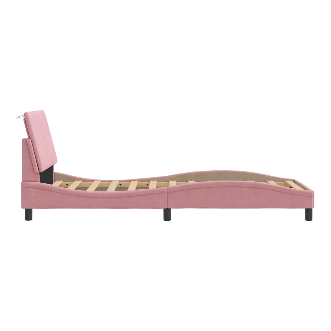 Obtenez une meilleure nuit de sommeil reposante grâce à ce cadre de lit avec lumières LED ! Il est un supplément accueillant à toute chambre à coucher. Velours doux : le velours est un tissu doux et confortable, agréable au toucher.Lattes de contreplaqué : les lattes de contreplaqué assurent une bonne répartition du poids, garantissant que le matelas reste en place à chaque torsion de votre corps pendant le sommeil.Excellent soutien : la tête de lit vous offre un excellent soutien du dos lorsque vous êtes assis dans votre lit pour lire ou regarder la télévision.Bande LED colorée : apportez de la gaieté dans l'obscurité avec des lumières LED colorées ! Les bandes auto-agrippantes situées à l'arrière du coussin de la tête de lit peuvent être utilisées pour fixer les lumières LED.Design latéral ondulé : l’aspect ondulé du cadre de lit est élégant et sophistiqué, ajoutant une touche moderne et élégante à votre décor, ce qui en fait le point central de votre chambre à coucher. Bon à savoir :Un matelas n'est pas inclus avec ce lit. Nous offrons une sélection variée de matelas. Vous pouvez consulter notre boutique pour trouver un matelas assorti.Ce produit est doté d'un connecteur USB qui nécessite une source d'alimentation USB de 5V certifiée (non incluse).