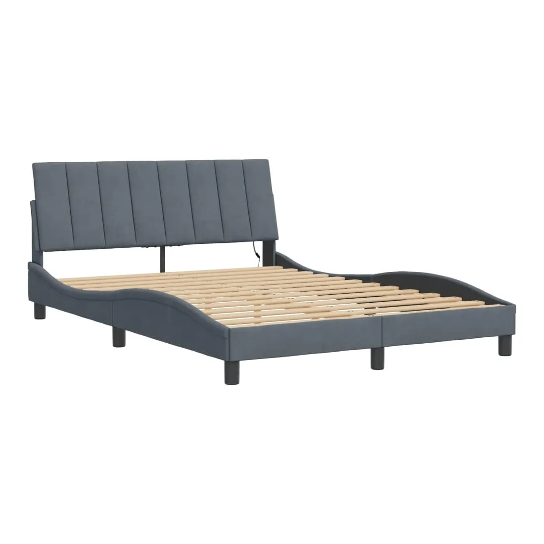 Obtenez une meilleure nuit de sommeil reposante grâce à ce cadre de lit avec lumières LED ! Il est un supplément accueillant à toute chambre à coucher. Velours doux : le velours est un tissu doux et confortable, agréable au toucher.Lattes de contreplaqué : les lattes de contreplaqué assurent une bonne répartition du poids, garantissant que le matelas reste en place à chaque torsion de votre corps pendant le sommeil.Excellent soutien : la tête de lit vous offre un excellent soutien du dos lorsque vous êtes assis dans votre lit pour lire ou regarder la télévision.Bande LED colorée : apportez de la gaieté dans l'obscurité avec des lumières LED colorées ! Les bandes auto-agrippantes situées à l'arrière du coussin de la tête de lit peuvent être utilisées pour fixer les lumières LED.Design latéral ondulé : l’aspect ondulé du cadre de lit est élégant et sophistiqué, ajoutant une touche moderne et élégante à votre décor, ce qui en fait le point central de votre chambre à coucher. Bon à savoir :Un matelas n'est pas inclus avec ce lit. Nous offrons une sélection variée de matelas. Vous pouvez consulter notre boutique pour trouver un matelas assorti.Ce produit est doté d'un connecteur USB qui nécessite une source d'alimentation USB de 5V certifiée (non incluse).