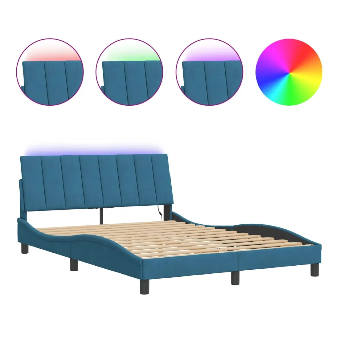 Obtenez une meilleure nuit de sommeil reposante grâce à ce cadre de lit avec lumières LED ! Il est un supplément accueillant à toute chambre à coucher. Velours doux : le velours est un tissu doux et confortable, agréable au toucher.Lattes de contreplaqué : les lattes de contreplaqué assurent une bonne répartition du poids, garantissant que le matelas reste en place à chaque torsion de votre corps pendant le sommeil.Excellent soutien : la tête de lit vous offre un excellent soutien du dos lorsque vous êtes assis dans votre lit pour lire ou regarder la télévision.Bande LED colorée : apportez de la gaieté dans l'obscurité avec des lumières LED colorées ! Les bandes auto-agrippantes situées à l'arrière du coussin de la tête de lit peuvent être utilisées pour fixer les lumières LED.Design latéral ondulé : l’aspect ondulé du cadre de lit est élégant et sophistiqué, ajoutant une touche moderne et élégante à votre décor, ce qui en fait le point central de votre chambre à coucher. Bon à savoir :Un matelas n'est pas inclus avec ce lit. Nous offrons une sélection variée de matelas. Vous pouvez consulter notre boutique pour trouver un matelas assorti.Ce produit est doté d'un connecteur USB qui nécessite une source d'alimentation USB de 5V certifiée (non incluse).