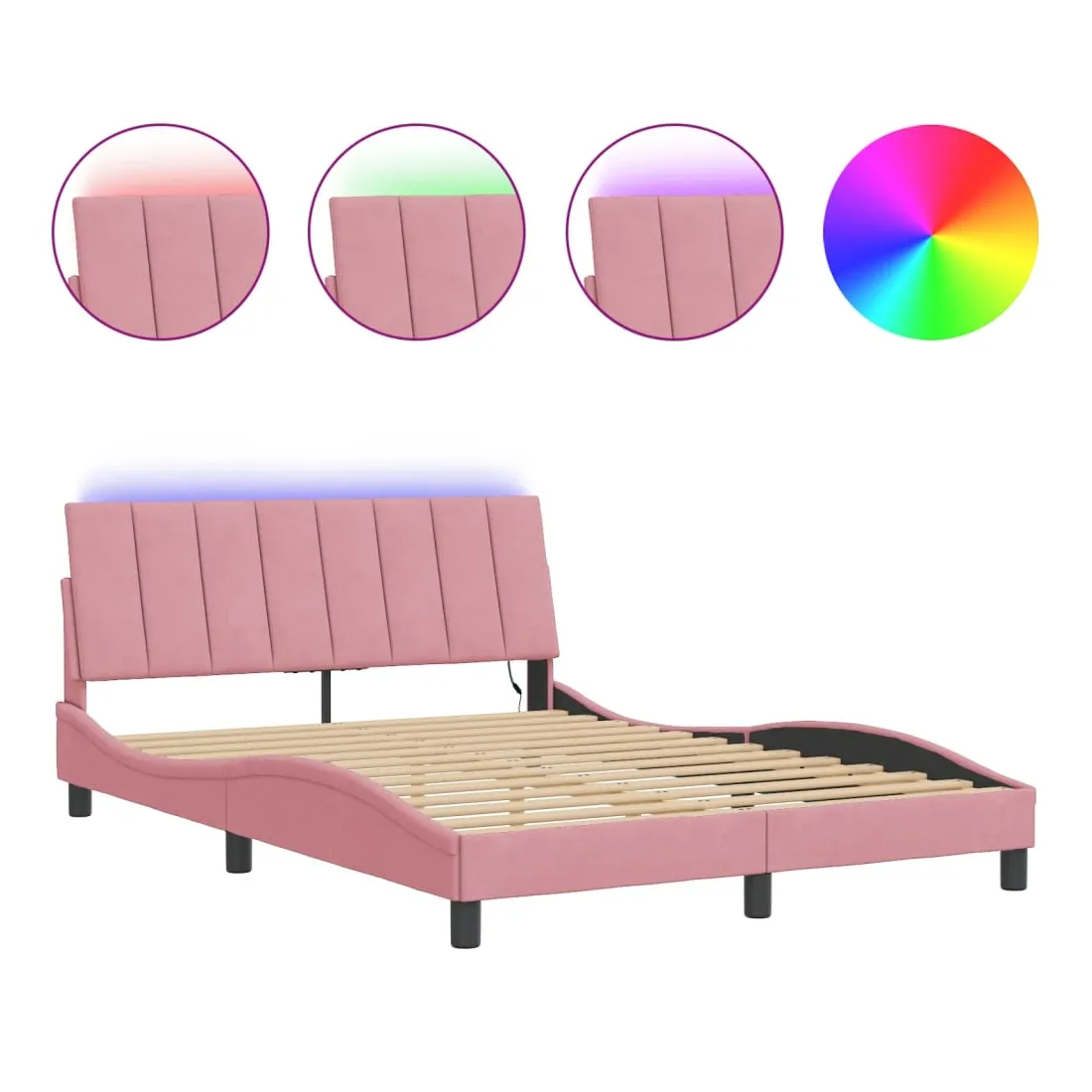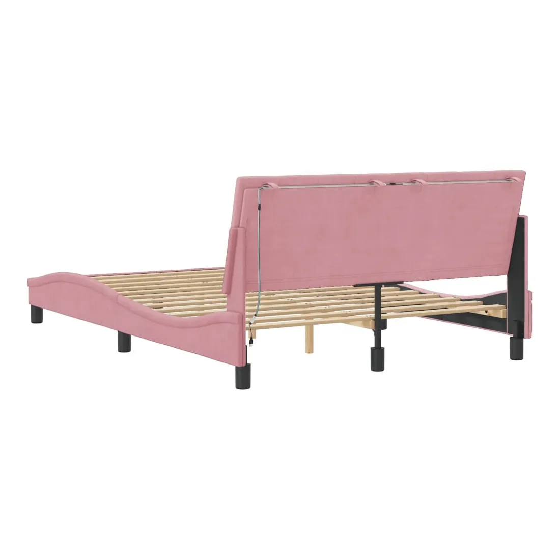 Obtenez une meilleure nuit de sommeil reposante grâce à ce cadre de lit avec lumières LED ! Il est un supplément accueillant à toute chambre à coucher. Velours doux : le velours est un tissu doux et confortable, agréable au toucher.Lattes de contreplaqué : les lattes de contreplaqué assurent une bonne répartition du poids, garantissant que le matelas reste en place à chaque torsion de votre corps pendant le sommeil.Excellent soutien : la tête de lit vous offre un excellent soutien du dos lorsque vous êtes assis dans votre lit pour lire ou regarder la télévision.Bande LED colorée : apportez de la gaieté dans l'obscurité avec des lumières LED colorées ! Les bandes auto-agrippantes situées à l'arrière du coussin de la tête de lit peuvent être utilisées pour fixer les lumières LED.Design latéral ondulé : l’aspect ondulé du cadre de lit est élégant et sophistiqué, ajoutant une touche moderne et élégante à votre décor, ce qui en fait le point central de votre chambre à coucher. Bon à savoir :Un matelas n'est pas inclus avec ce lit. Nous offrons une sélection variée de matelas. Vous pouvez consulter notre boutique pour trouver un matelas assorti.Ce produit est doté d'un connecteur USB qui nécessite une source d'alimentation USB de 5V certifiée (non incluse).