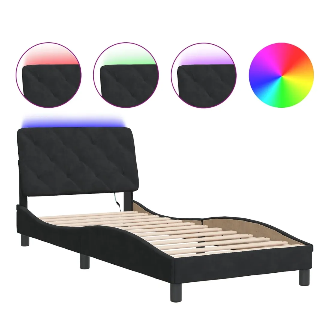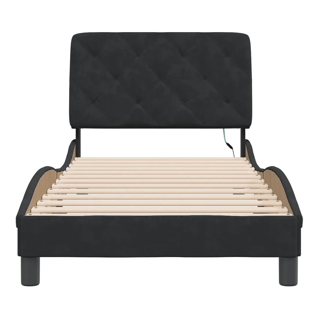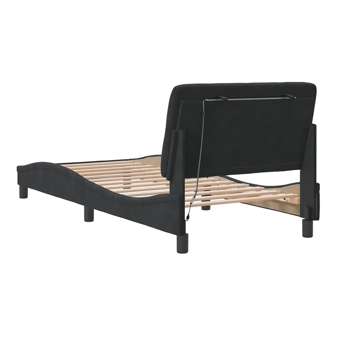 Obtenez une meilleure nuit de sommeil reposante grâce à ce cadre de lit avec lumières LED ! Il est un supplément accueillant à toute chambre à coucher. Velours doux : le velours est un tissu doux et confortable, agréable au toucher. Lattes de contreplaqué : les lattes de contreplaqué assurent une bonne répartition du poids, garantissant que le matelas reste en place à chaque torsion de votre corps pendant le sommeil. Excellent soutien : l'oreiller de tête de lit est rembourré avec de la mousse pour un confort ultra doux et optimal vous offre un excellent soutien du dos lorsque vous êtes assis dans votre lit pour lire ou regarder la télévision. Bande LED colorée : apportez de la gaieté dans l'obscurité avec des lumières LED colorées ! Les bandes auto-agrippantes situées à l'arrière du coussin de la tête de lit peuvent être utilisées pour fixer les lumières LED. Design latéral ondulé : l’aspect ondulé du cadre de lit est élégant et sophistiqué, ajoutant une touche moderne et élégante à votre décor, ce qui en fait le point central de votre chambre à coucher. Bon à savoir :Un matelas n'est pas inclus avec ce lit. Nous offrons une sélection variée de matelas. Vous pouvez consulter notre boutique pour trouver un matelas assorti.Ce produit est doté d'un connecteur USB qui nécessite une source d'alimentation USB de 5V certifiée (non incluse).