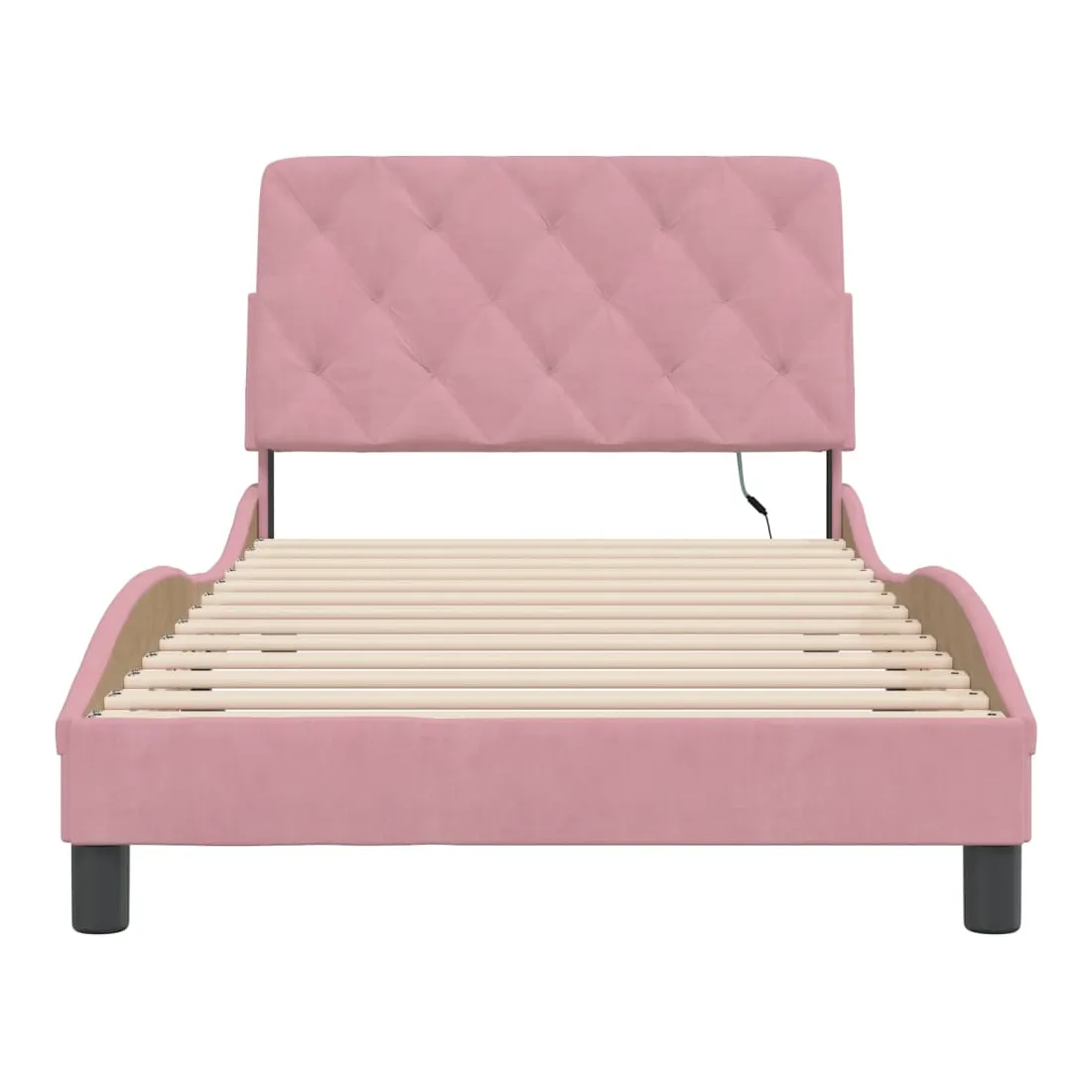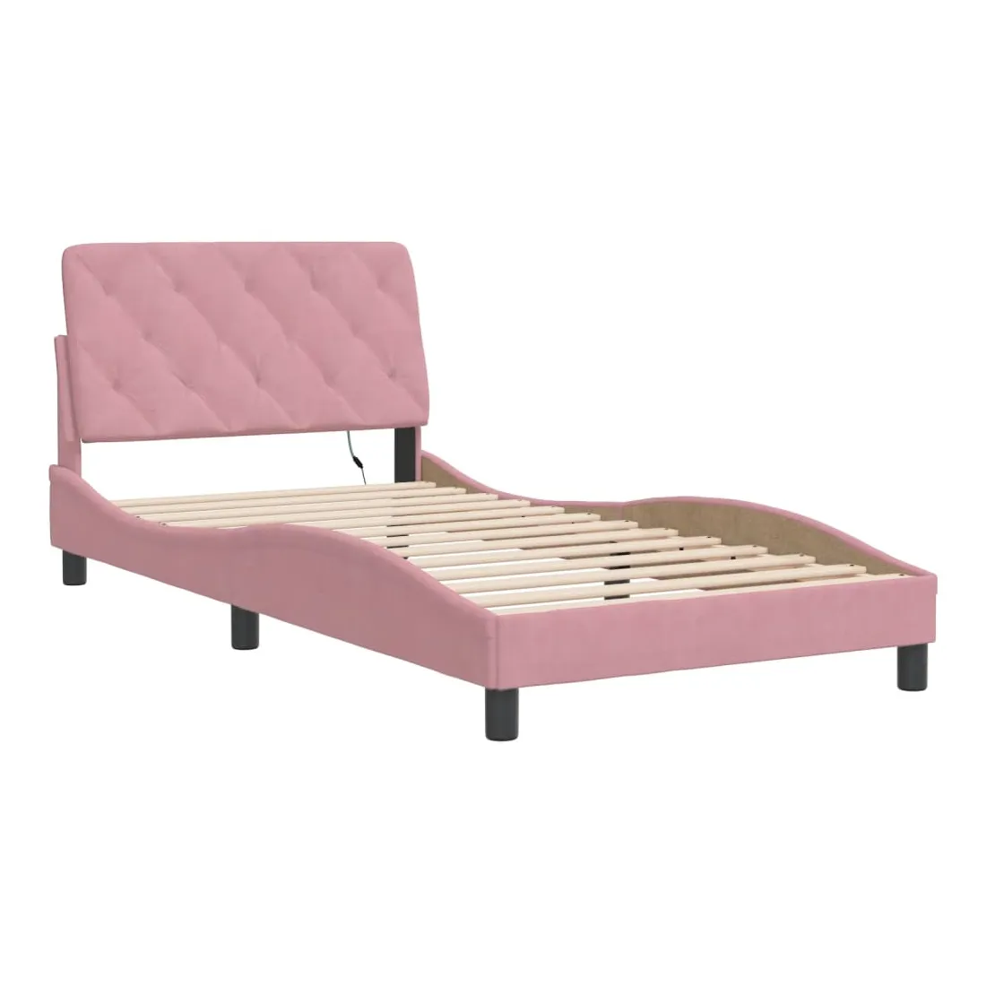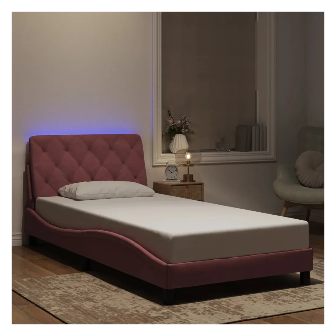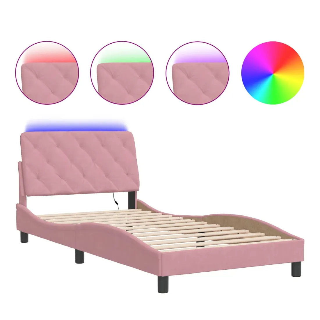 Obtenez une meilleure nuit de sommeil reposante grâce à ce cadre de lit avec lumières LED ! Il est un supplément accueillant à toute chambre à coucher. Velours doux : le velours est un tissu doux et confortable, agréable au toucher. Lattes de contreplaqué : les lattes de contreplaqué assurent une bonne répartition du poids, garantissant que le matelas reste en place à chaque torsion de votre corps pendant le sommeil. Excellent soutien : l'oreiller de tête de lit est rembourré avec de la mousse pour un confort ultra doux et optimal vous offre un excellent soutien du dos lorsque vous êtes assis dans votre lit pour lire ou regarder la télévision. Bande LED colorée : apportez de la gaieté dans l'obscurité avec des lumières LED colorées ! Les bandes auto-agrippantes situées à l'arrière du coussin de la tête de lit peuvent être utilisées pour fixer les lumières LED. Design latéral ondulé : l’aspect ondulé du cadre de lit est élégant et sophistiqué, ajoutant une touche moderne et élégante à votre décor, ce qui en fait le point central de votre chambre à coucher. Bon à savoir :Un matelas n'est pas inclus avec ce lit. Nous offrons une sélection variée de matelas. Vous pouvez consulter notre boutique pour trouver un matelas assorti.Ce produit est doté d'un connecteur USB qui nécessite une source d'alimentation USB de 5V certifiée (non incluse).