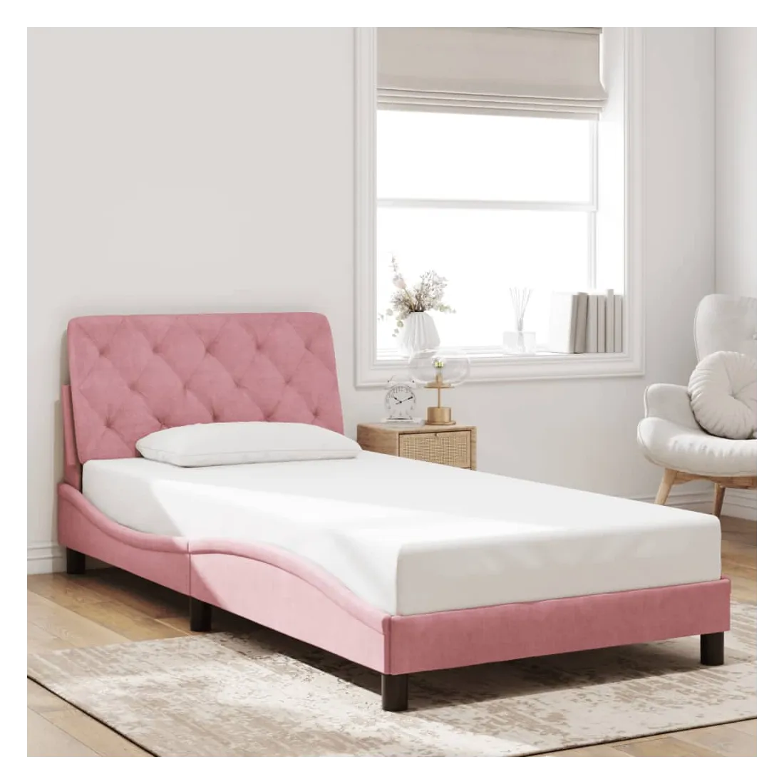 - Matériau : velours (100 % polyester), métal, bois de pin massif, contreplaqué, bois d’ingénierie