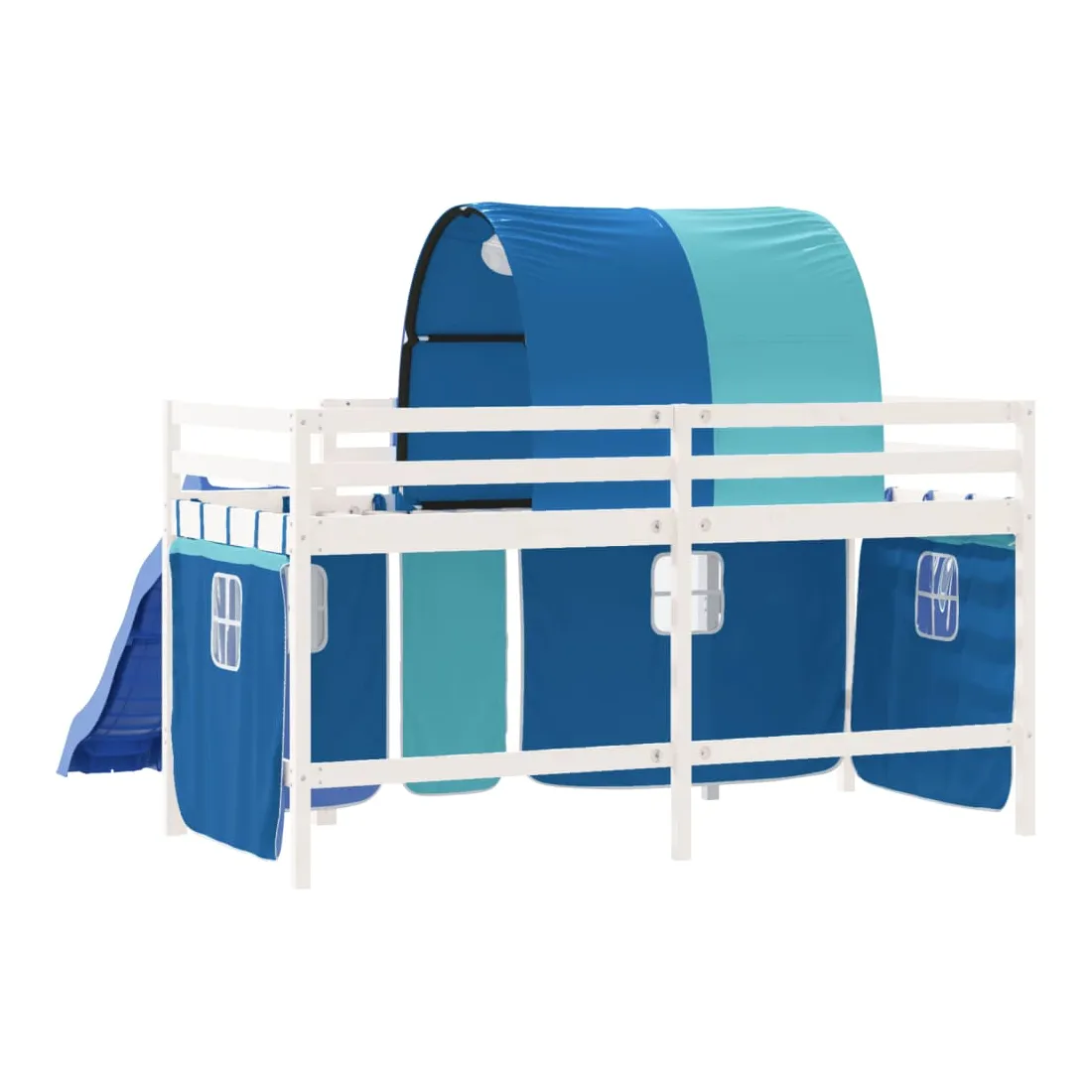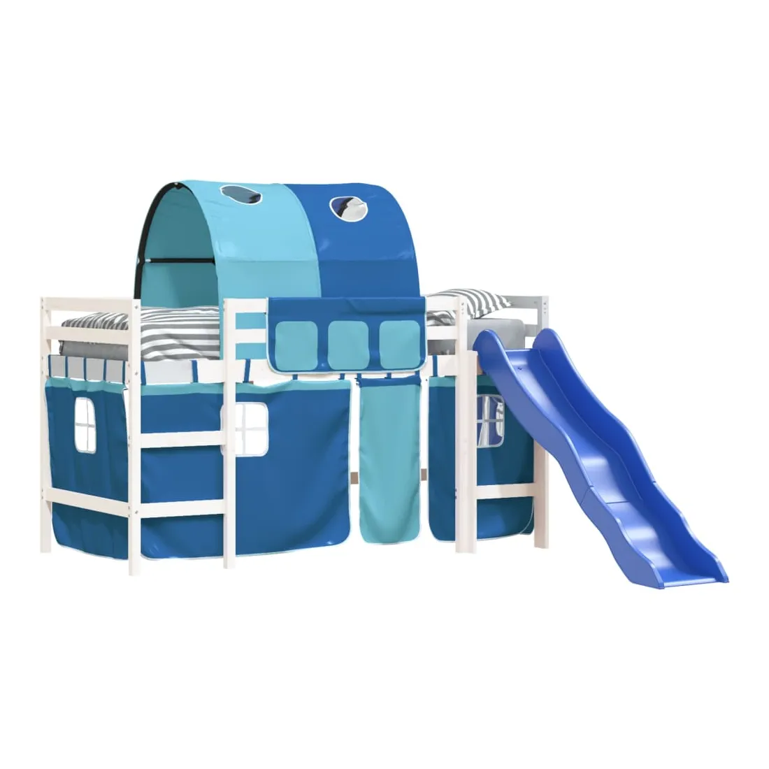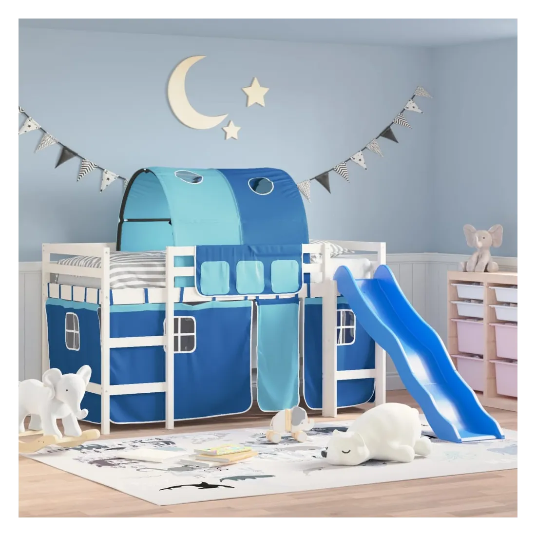 Lit mezzanine enfants avec tunnel sans matelas bleu 80x200 cm