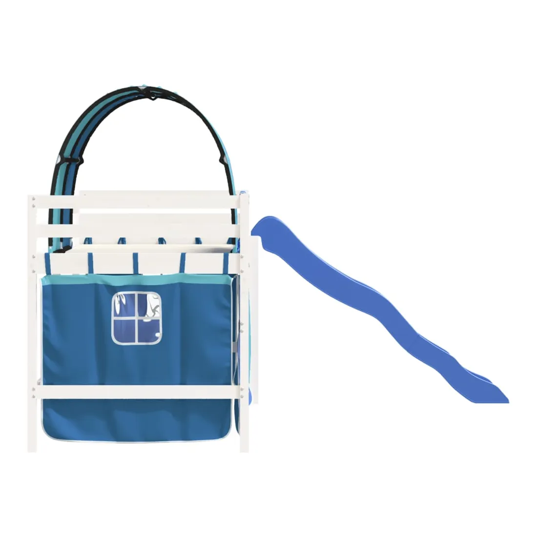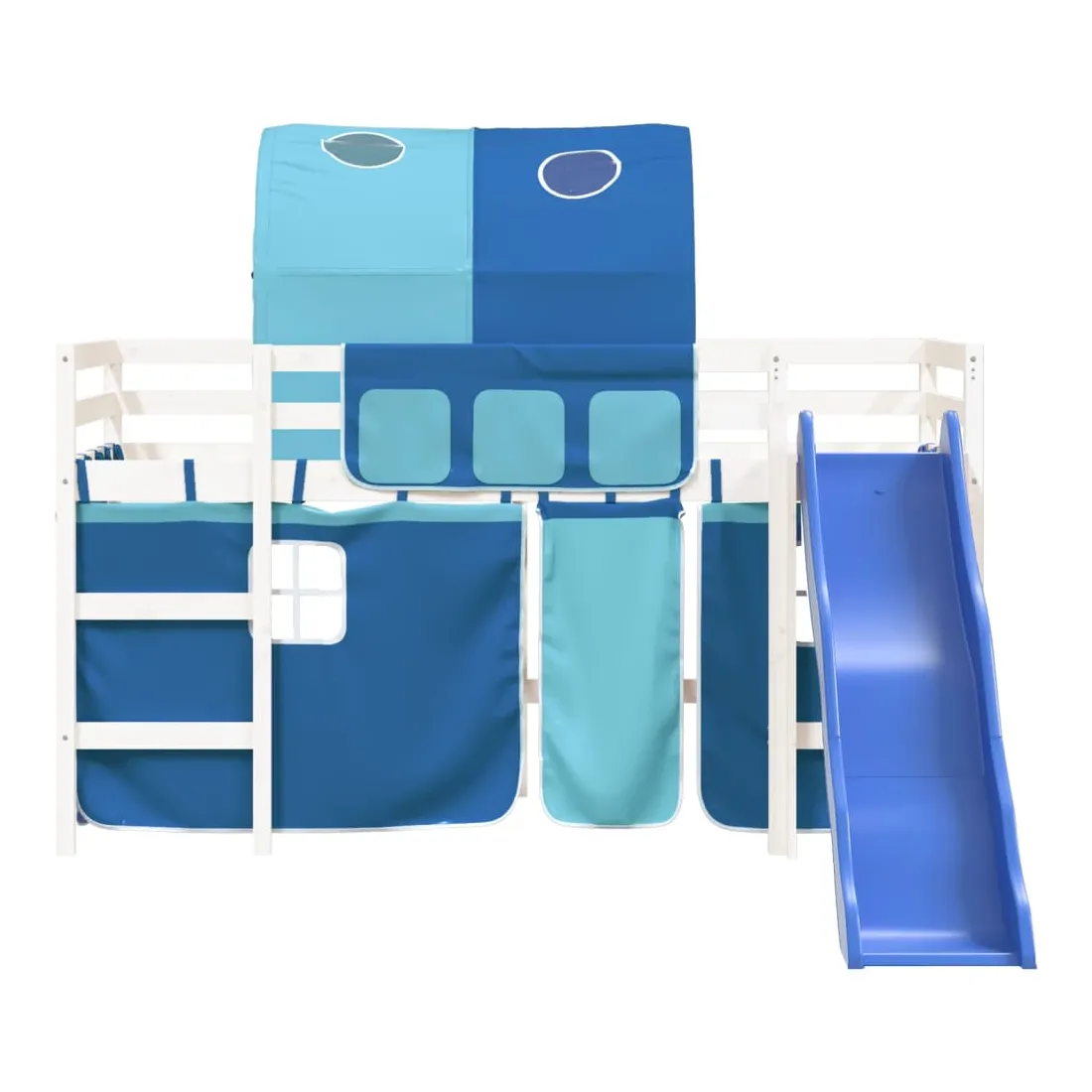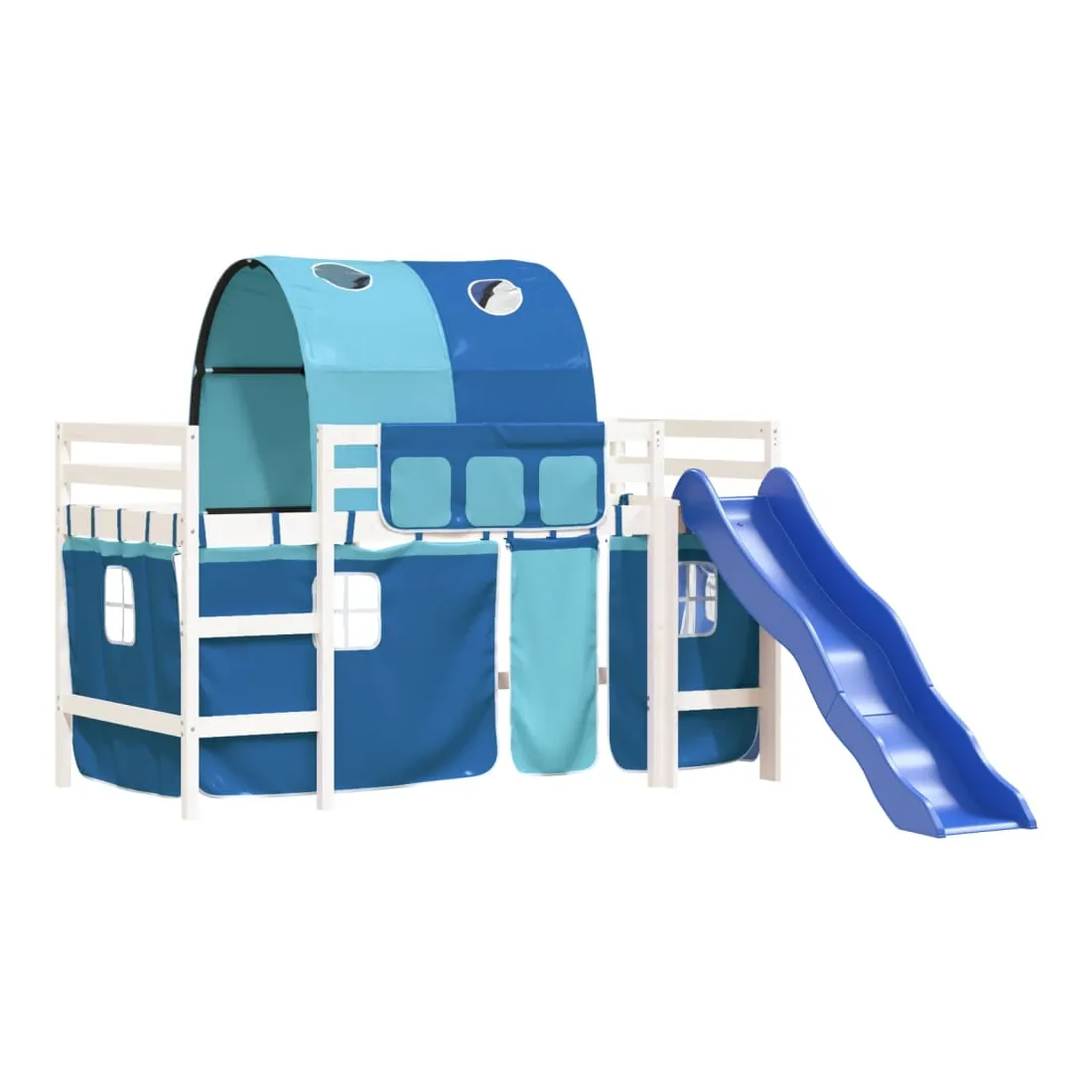 Lit mezzanine enfants avec tunnel sans matelas bleu 80x200 cm