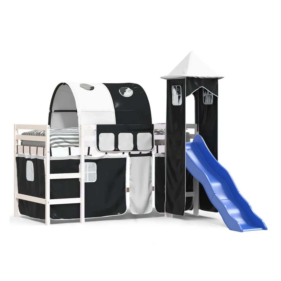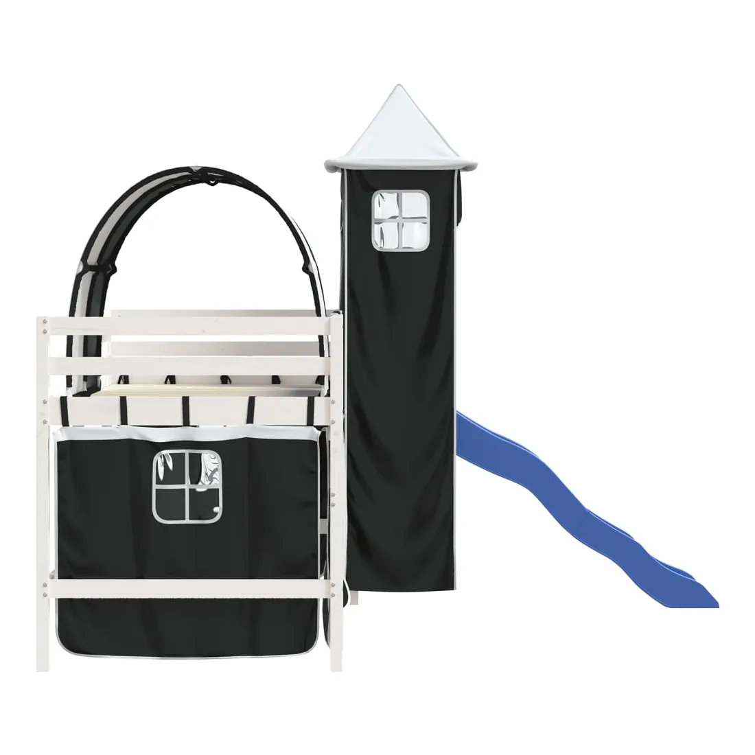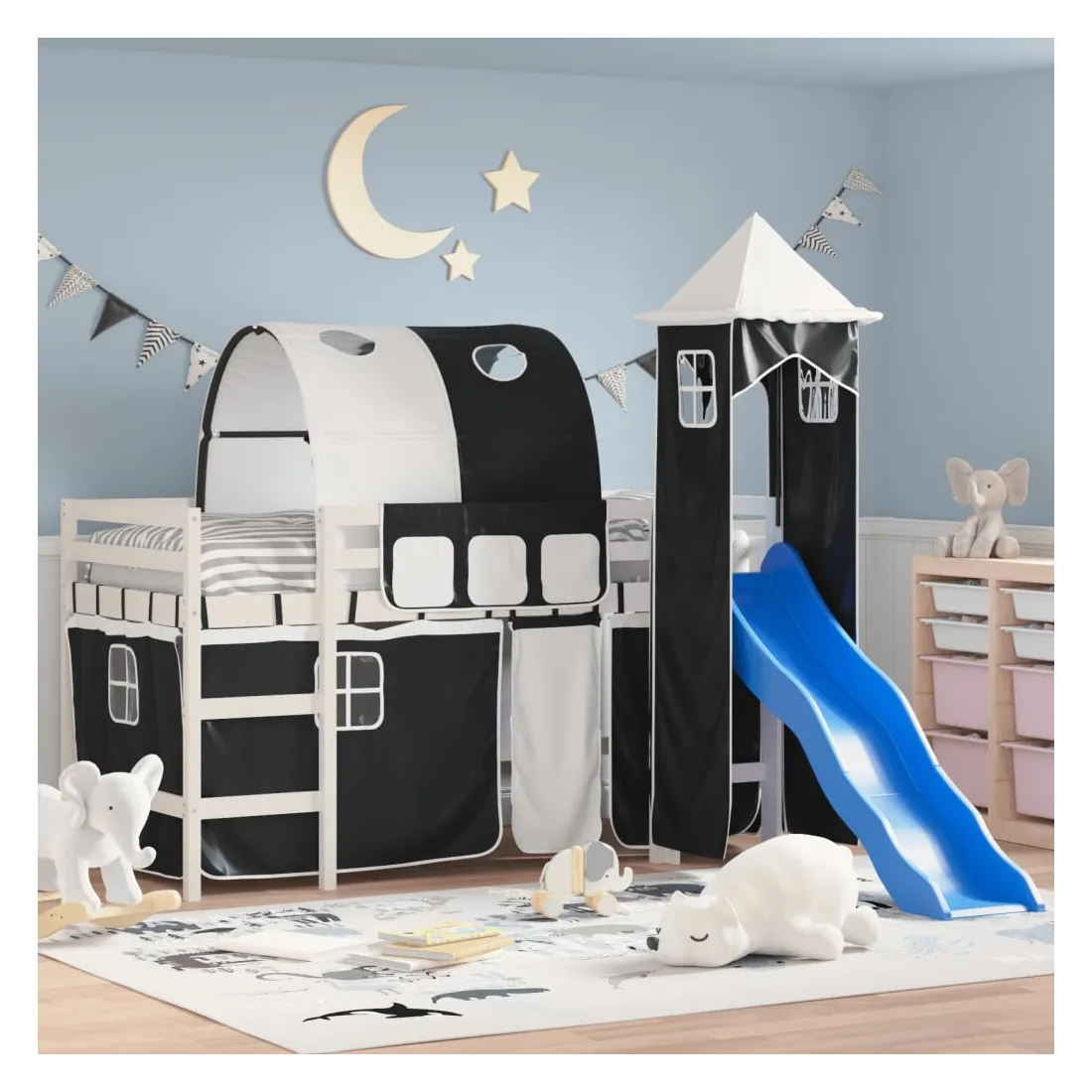 Lit mezzanine enfants et tour sans matelas blanc noir 80x200cm