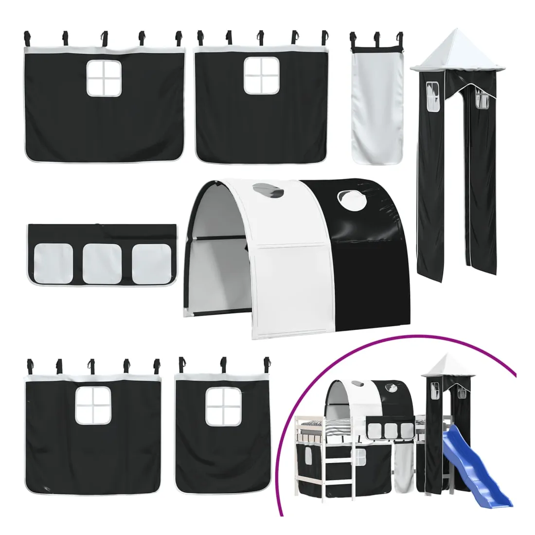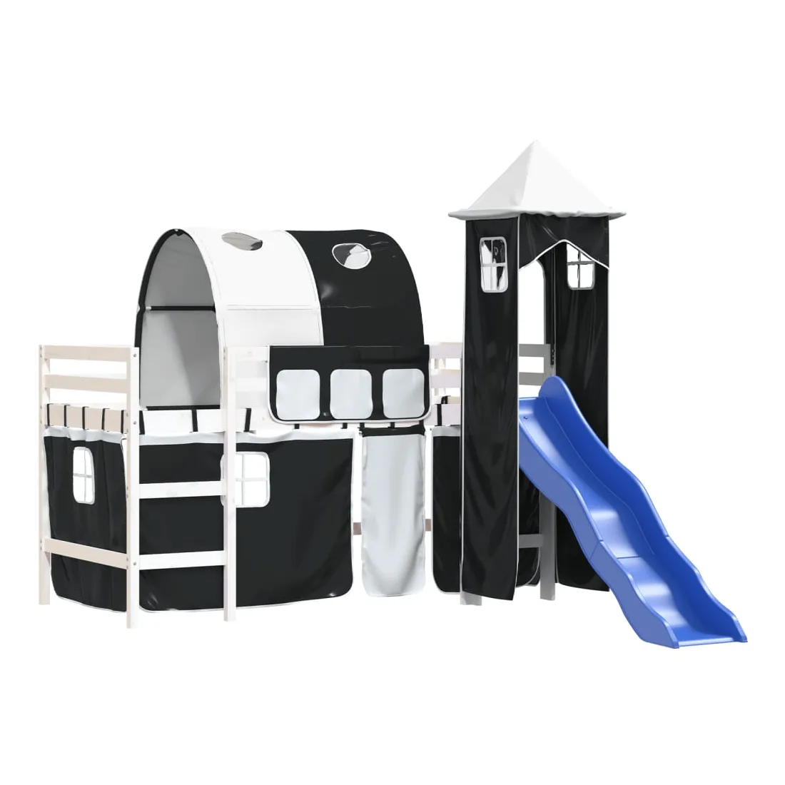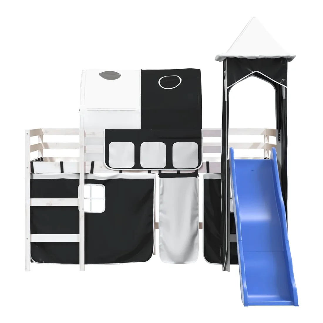 Lit mezzanine enfants et tour sans matelas blanc noir 80x200cm