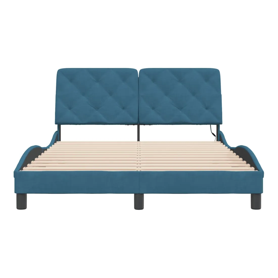 Obtenez une meilleure nuit de sommeil reposante grâce à ce cadre de lit avec lumières LED ! Il est un supplément accueillant à toute chambre à coucher. Velours doux : le velours est un tissu doux et confortable, agréable au toucher. Lattes de contreplaqué : les lattes de contreplaqué assurent une bonne répartition du poids, garantissant que le matelas reste en place à chaque torsion de votre corps pendant le sommeil. Excellent soutien : l'oreiller de tête de lit est rembourré avec de la mousse pour un confort ultra doux et optimal vous offre un excellent soutien du dos lorsque vous êtes assis dans votre lit pour lire ou regarder la télévision. Bande LED colorée : apportez de la gaieté dans l'obscurité avec des lumières LED colorées ! Les bandes auto-agrippantes situées à l'arrière du coussin de la tête de lit peuvent être utilisées pour fixer les lumières LED. Design latéral ondulé : l’aspect ondulé du cadre de lit est élégant et sophistiqué, ajoutant une touche moderne et élégante à votre décor, ce qui en fait le point central de votre chambre à coucher. Bon à savoir :Un matelas n'est pas inclus avec ce lit. Nous offrons une sélection variée de matelas. Vous pouvez consulter notre boutique pour trouver un matelas assorti.Ce produit est doté d'un connecteur USB qui nécessite une source d'alimentation USB de 5V certifiée (non incluse).